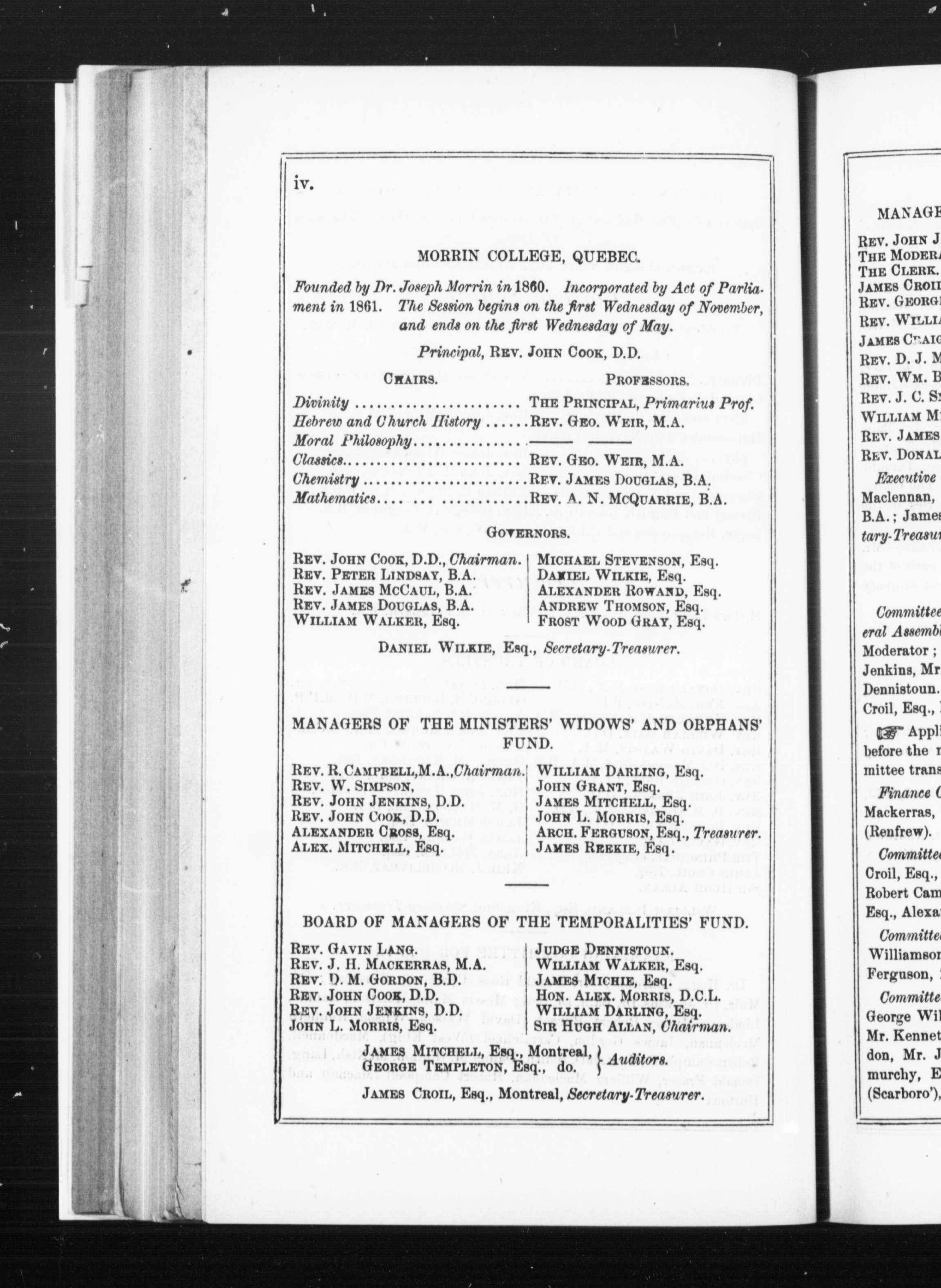[Toronto?] : [Synod of the Presbyterian Church of Canada, in Connection with the Church of Scotland], 1873; 137 images avec recherche en texte intégral