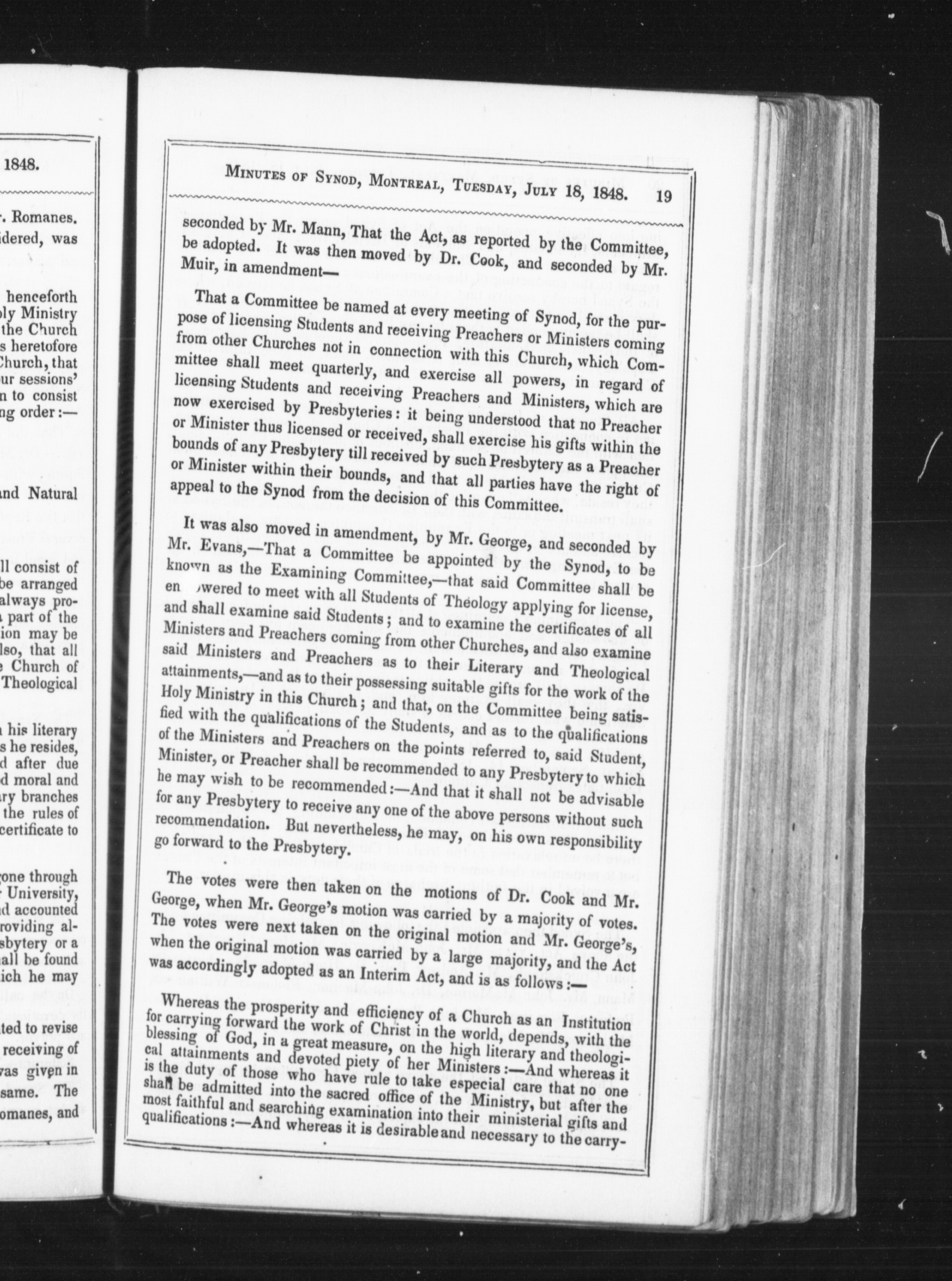 The acts and proceedings of the Synod of the Presbyterian Church of Canada, in Connection with the Church of Scotland : The acts and proceedings of the Synod of the Presbyterian Church of Canada, in Connection with the Church of Scotland : Session XIX (1848)