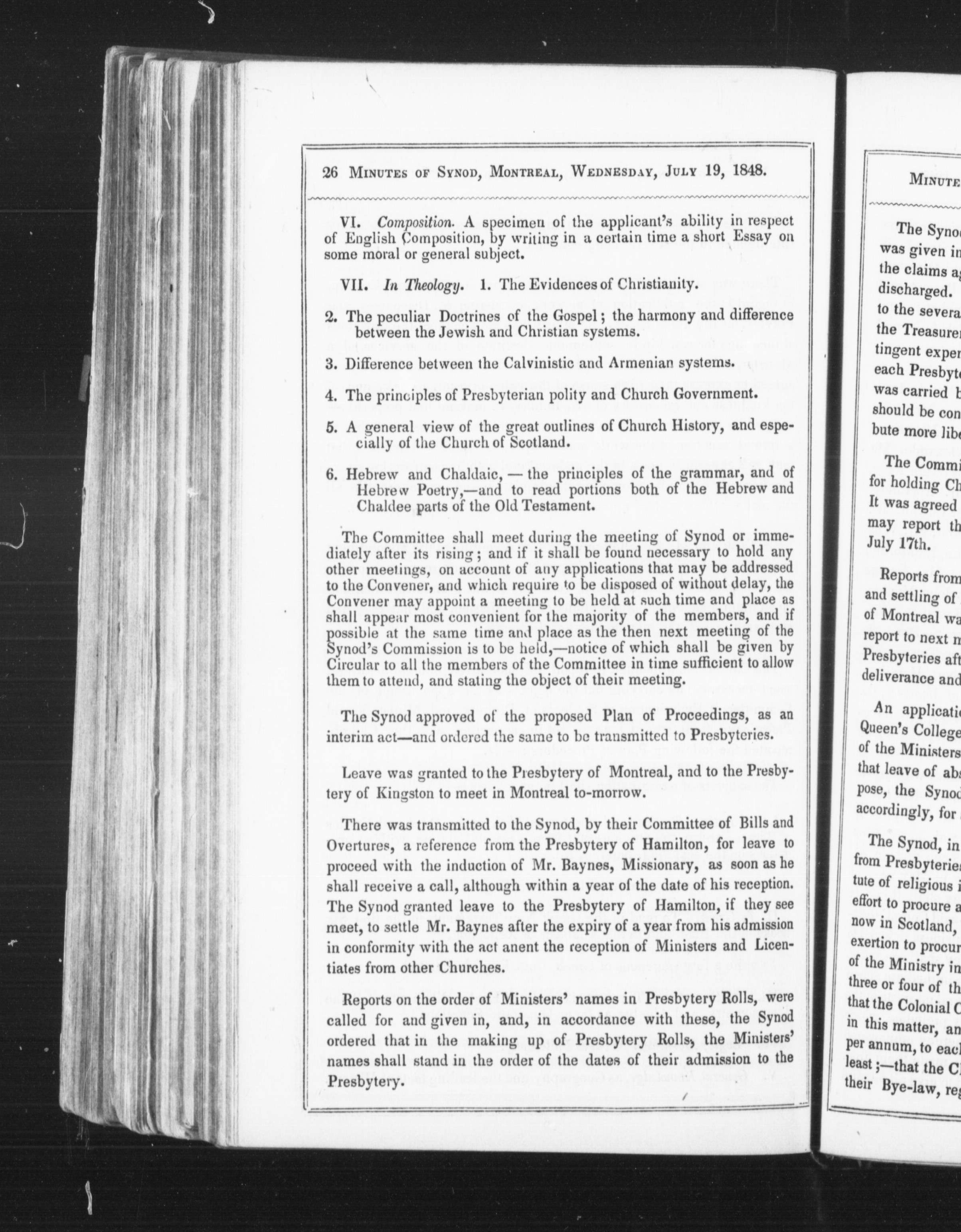 Aide [Toronto?] : [Synod of the Presbyterian Church of Canada, in Connection with the Church of Scotland], 1850; 34 images avec recherche en texte intégral