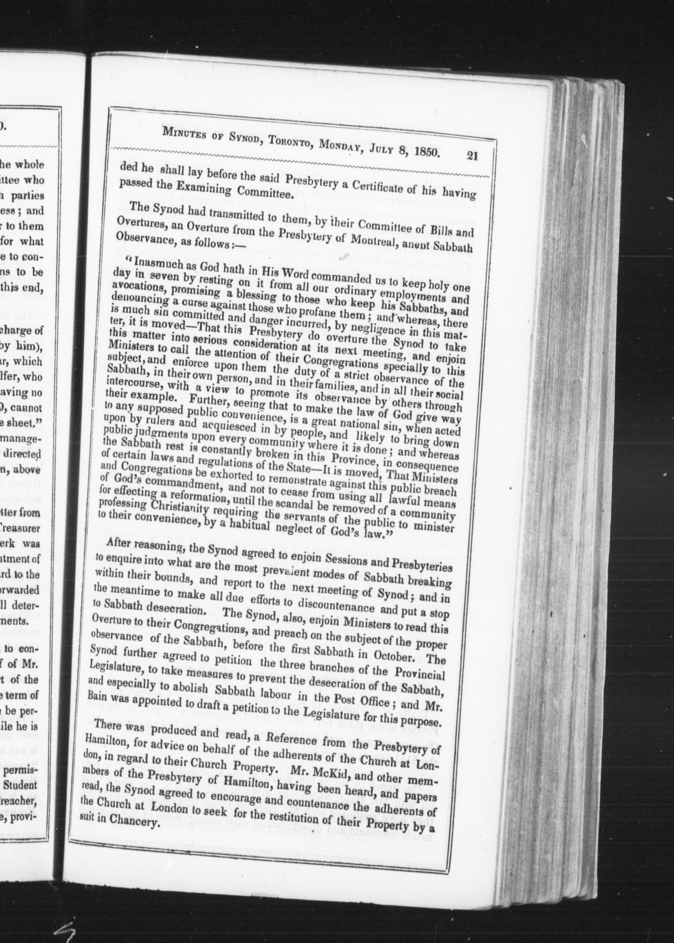 [Toronto?] : [Synod of the Presbyterian Church of Canada, in Connection with the Church of Scotland], 1850; 54 images with full-text search