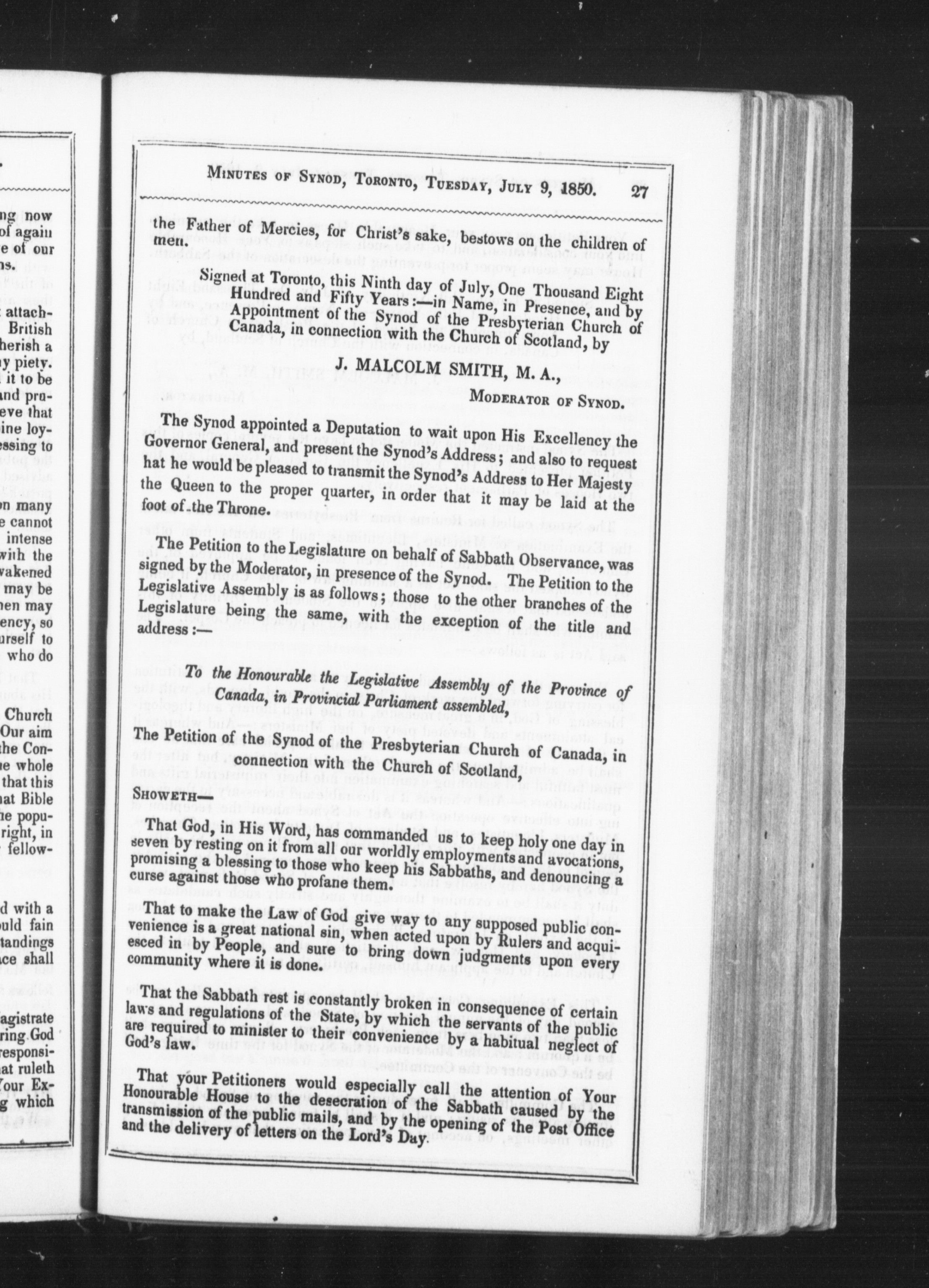Aide [Toronto?] : [Synod of the Presbyterian Church of Canada, in Connection with the Church of Scotland], 1850; 54 images avec recherche en texte intégral