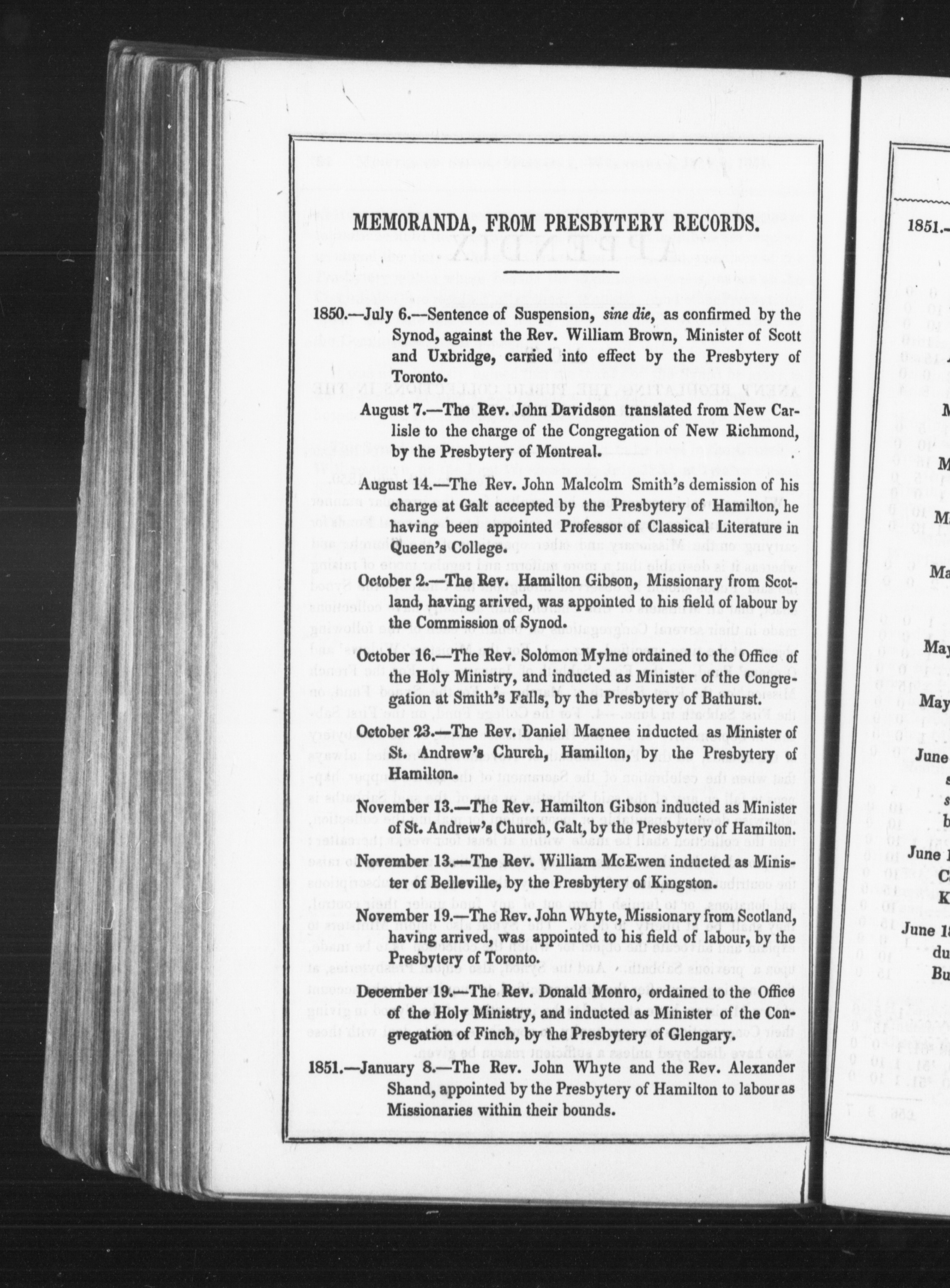 [Toronto?] : [Synod of the Presbyterian Church of Canada, in Connection with the Church of Scotland], 1851; 40 images avec recherche en texte intégral