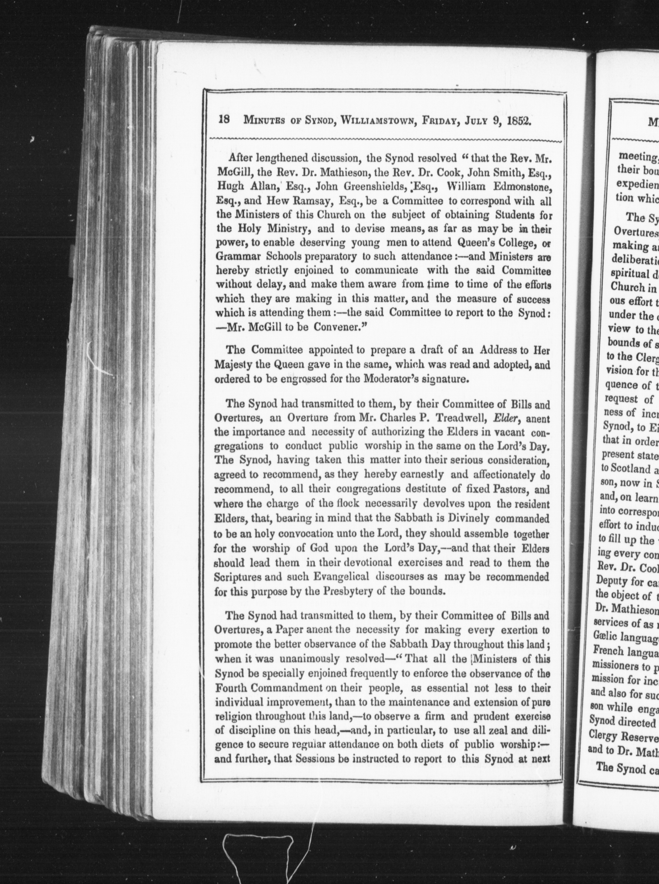 [Toronto?] : [Synod of the Presbyterian Church of Canada, in Connection with the Church of Scotland], 1852; 39 images with full-text search