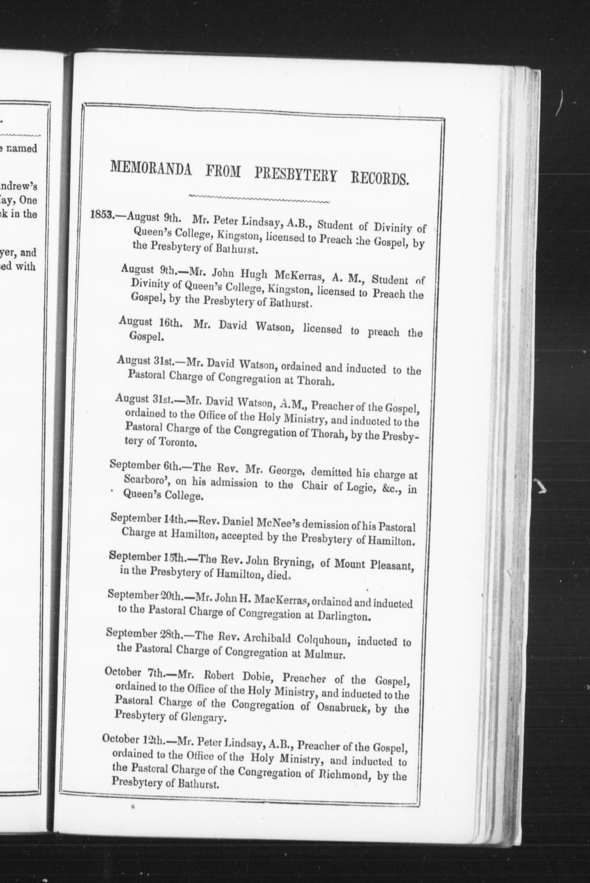 Aide [Toronto?] : [Synod of the Presbyterian Church of Canada, in Connection with the Church of Scotland], 1854; 40 images avec recherche en texte intégral