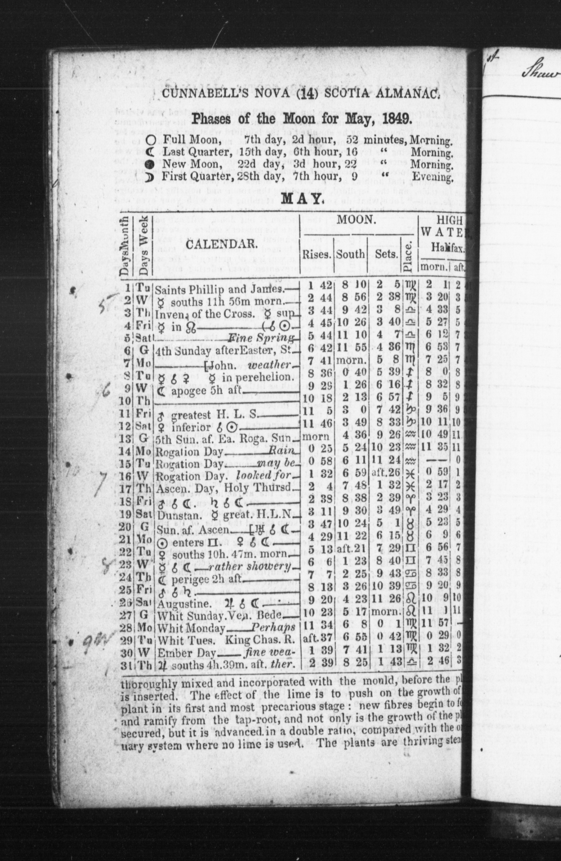 - Cunnabell's Nova-Scotia almanac, for the year of our Lord 1849 : New Series No. VII, Whole No. XVI (1849)
