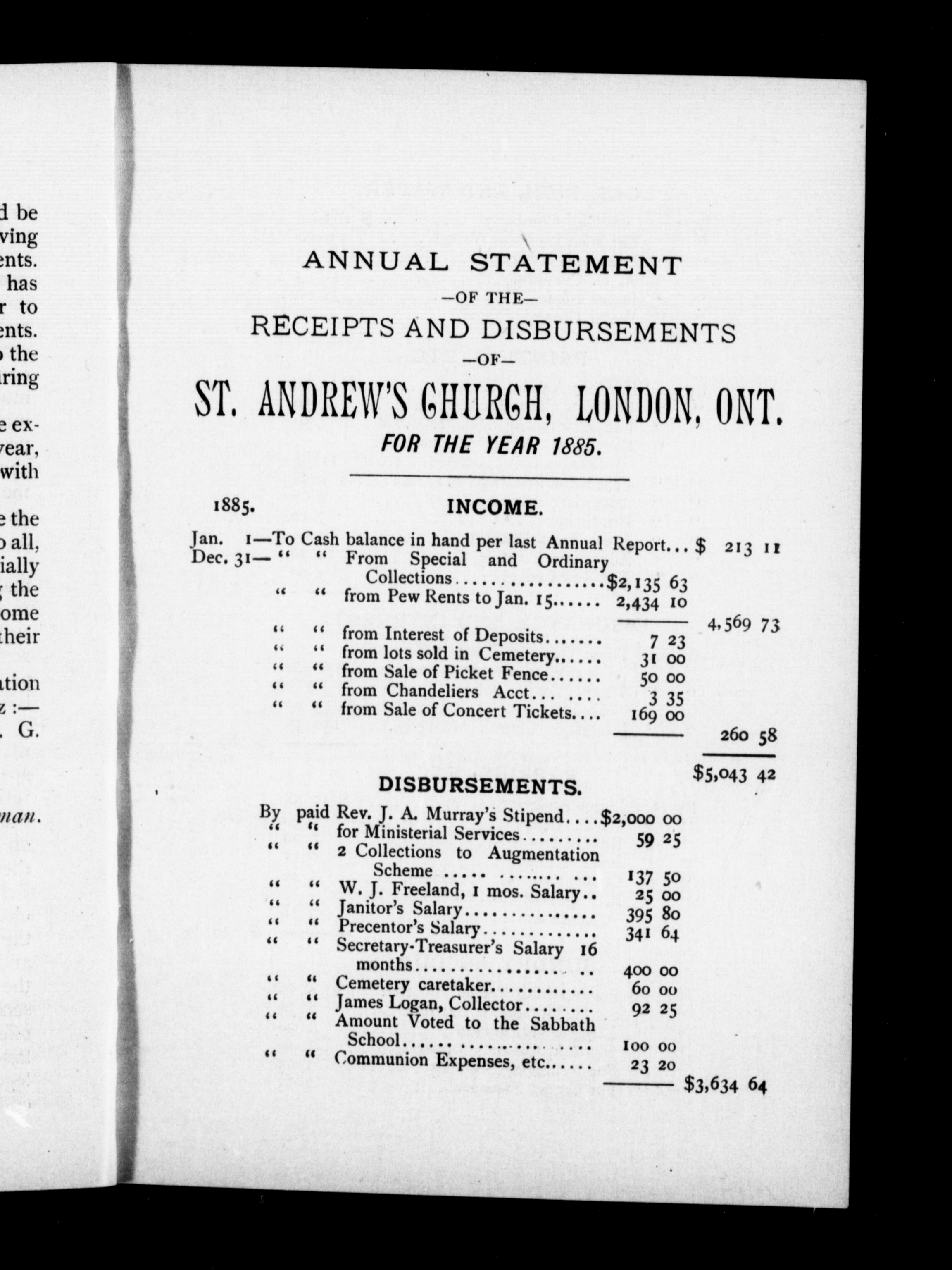 - The annual report of St. Andrew's Church, London, for the year 1885 : 1885