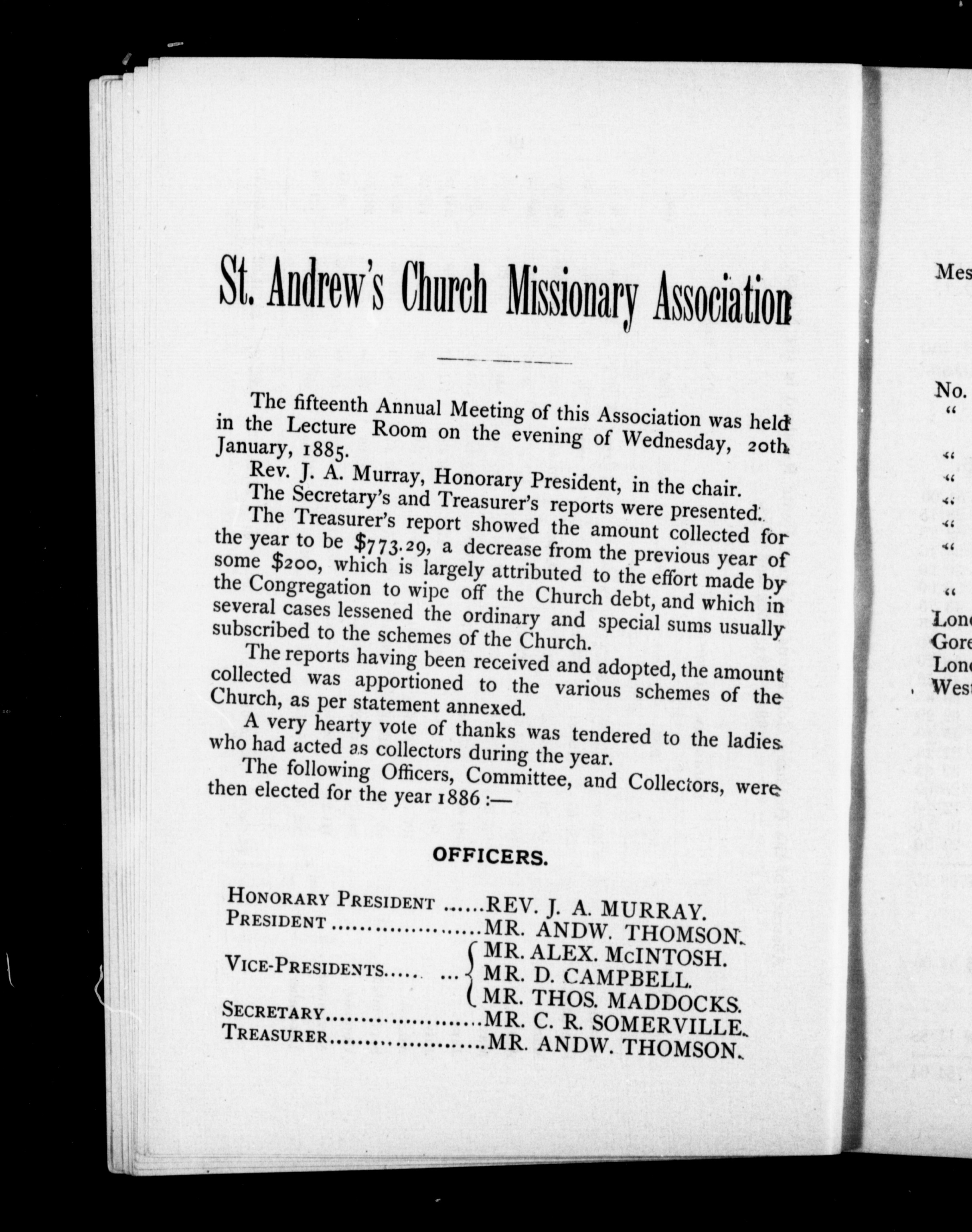 - The annual report of St. Andrew's Church, London, for the year 1885 : 1885