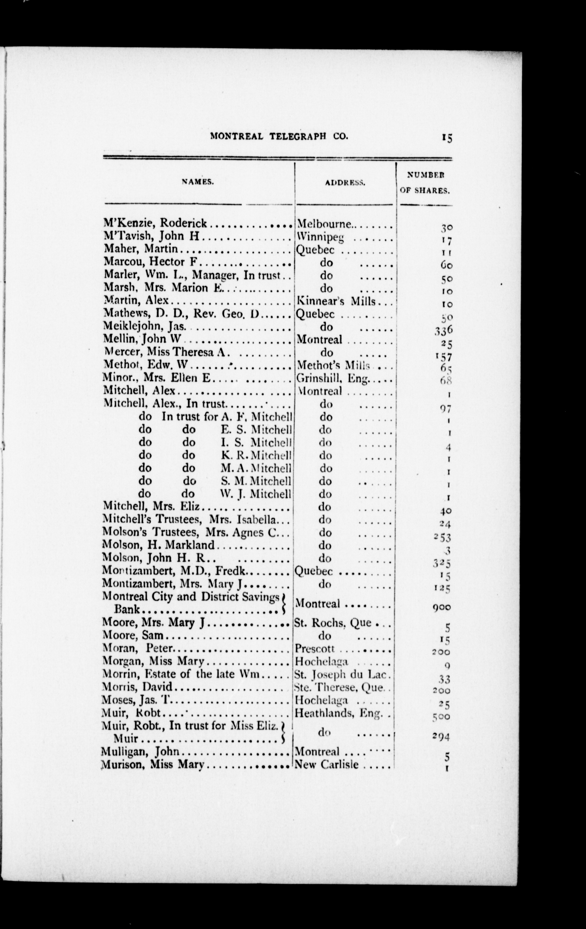 - Annual report, statements and list of shareholders of the Montreal Telegraph Company : 1885