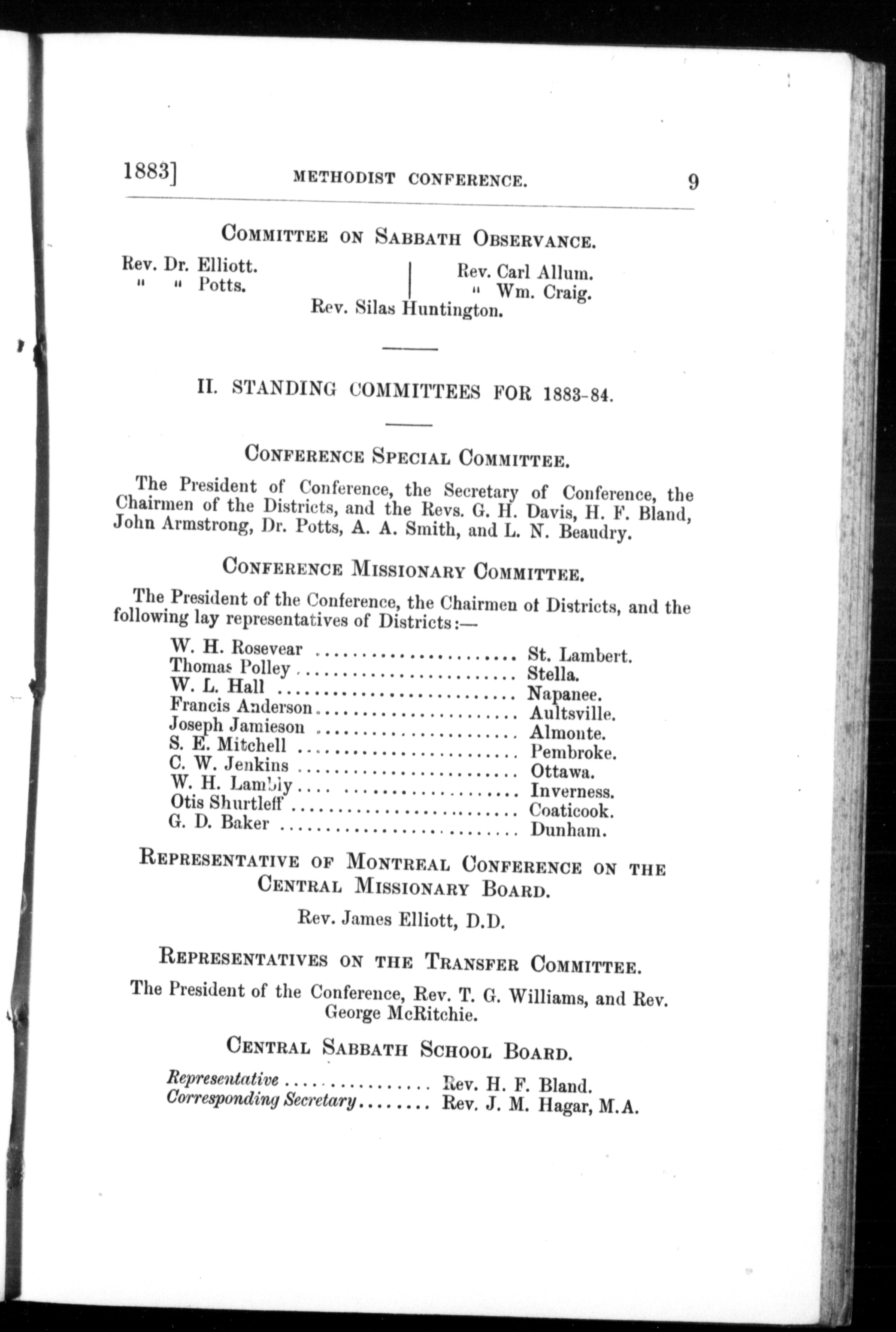 Minutes of the proceedings of the ... session of the Montreal Annual Conference of the Methodist Church of Canada : Minutes of the proceedings of the ninth [sic] session of the Montreal Annual Conference of the Methodist Church of Canada, held in the Dominion Methodist Church, Ottawa, beginning on Wednesday, the 30th day of May, and concluding on Wednesday, the 6th day of June, A.D. 1883 : Tenth (1883)