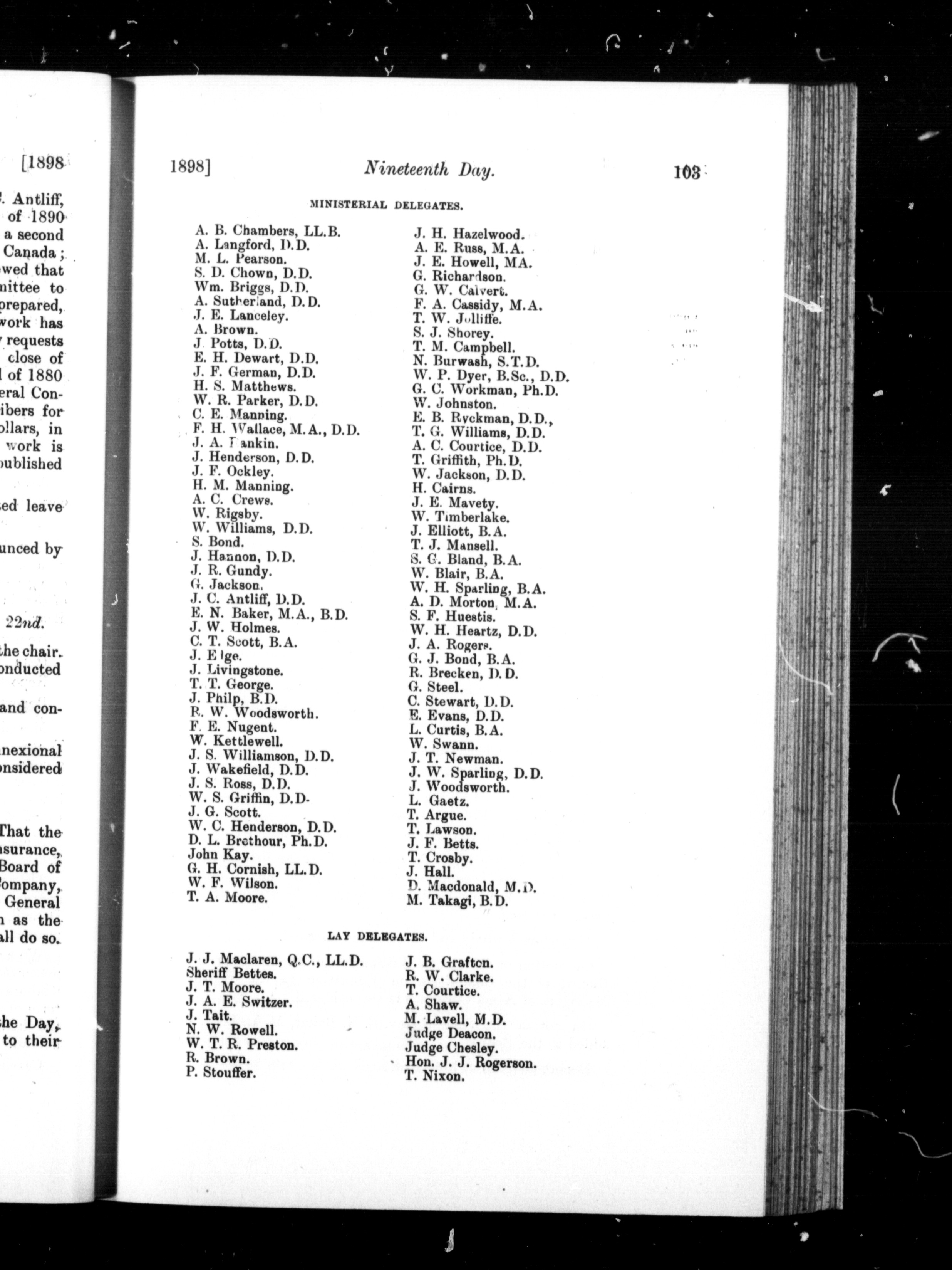 Journal of proceedings of the fifth General Conference of the Methodist Church, held September 1st to September 22nd, 1898, in the Metropolitan Church, Toronto, Ont. : Fifth (1898)