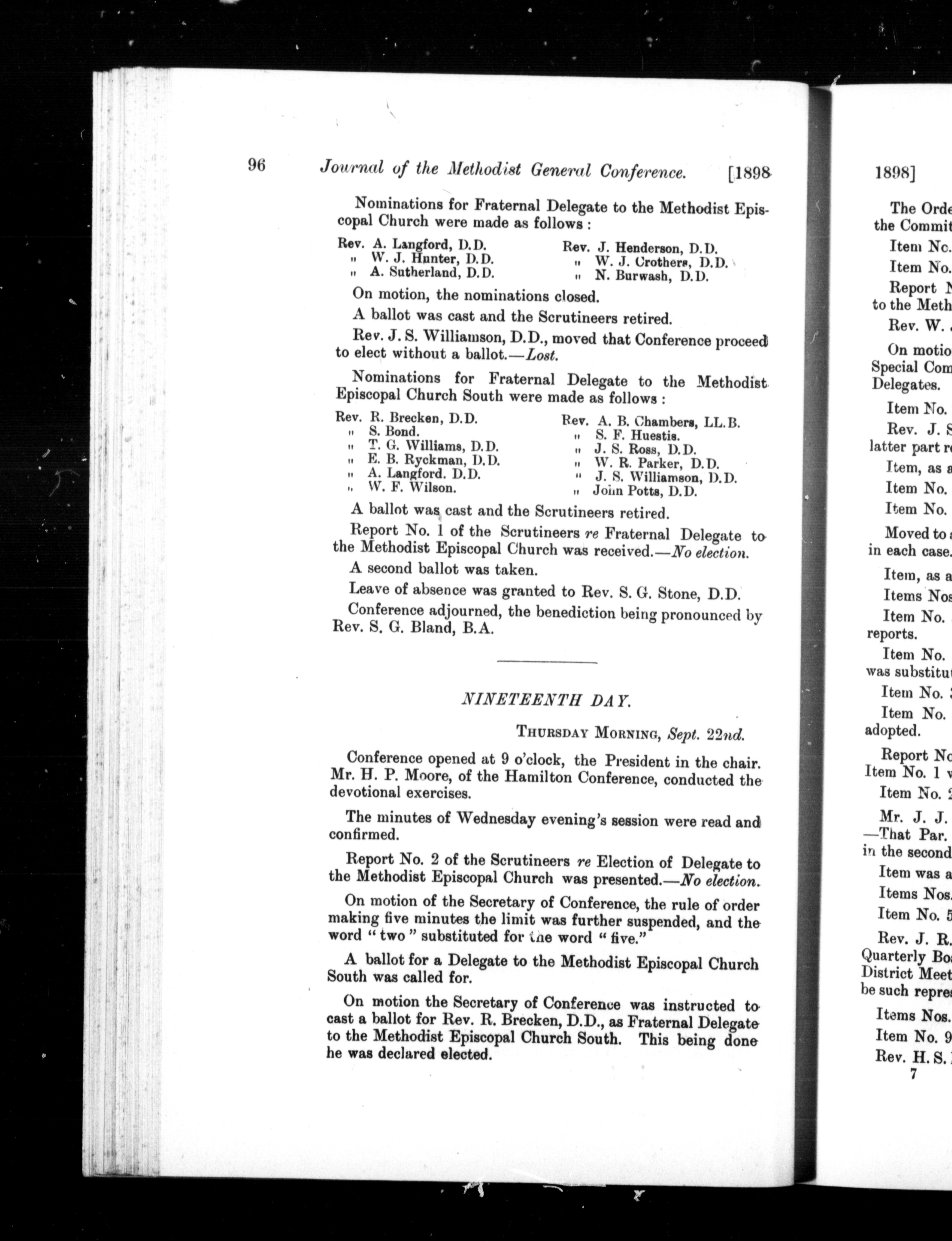 Journal of proceedings of the fifth General Conference of the Methodist Church, held September 1st to September 22nd, 1898, in the Metropolitan Church, Toronto, Ont. : Fifth (1898)