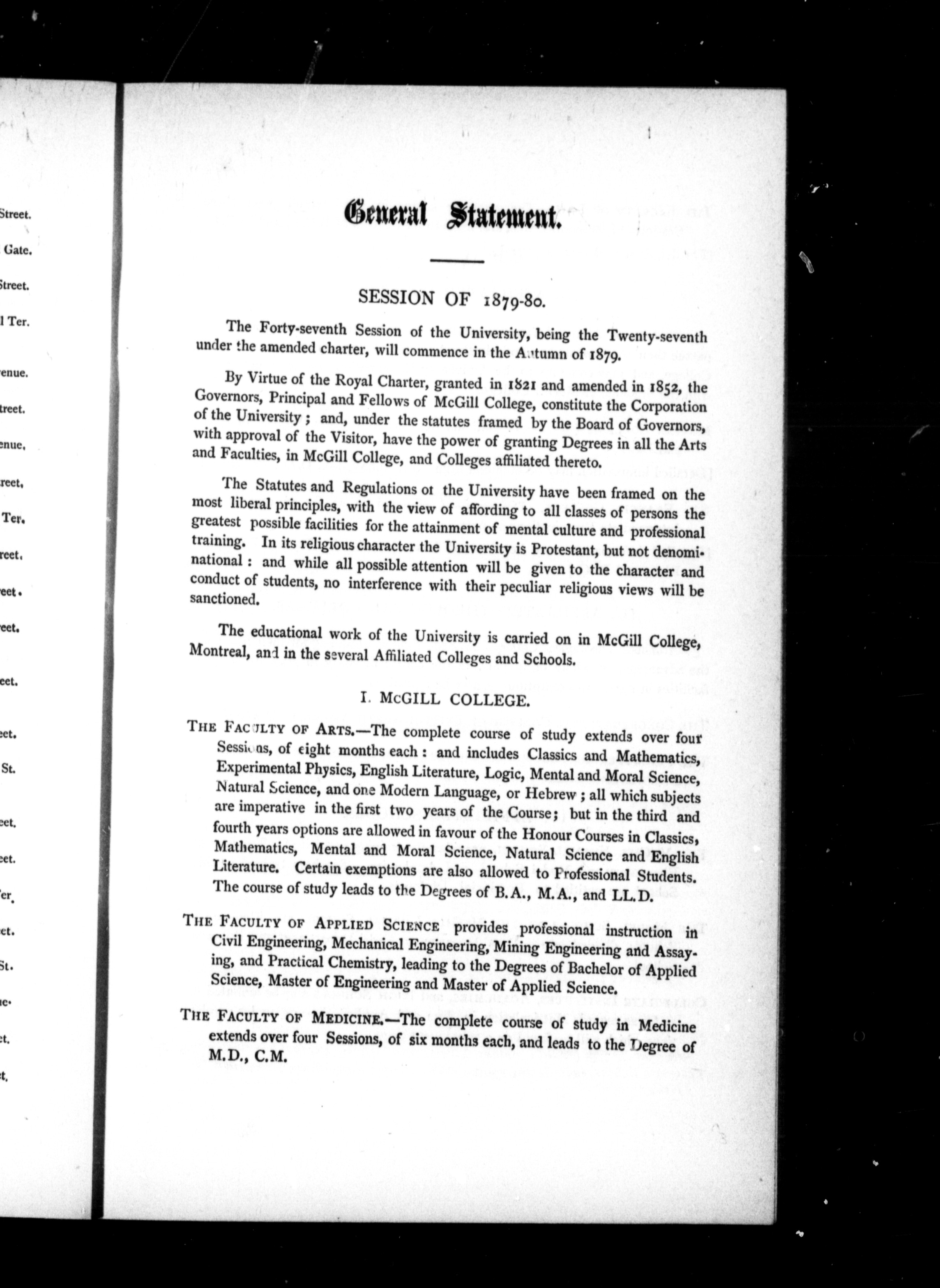 - Annual calendar of McGill College and University, Montreal : 1879/80