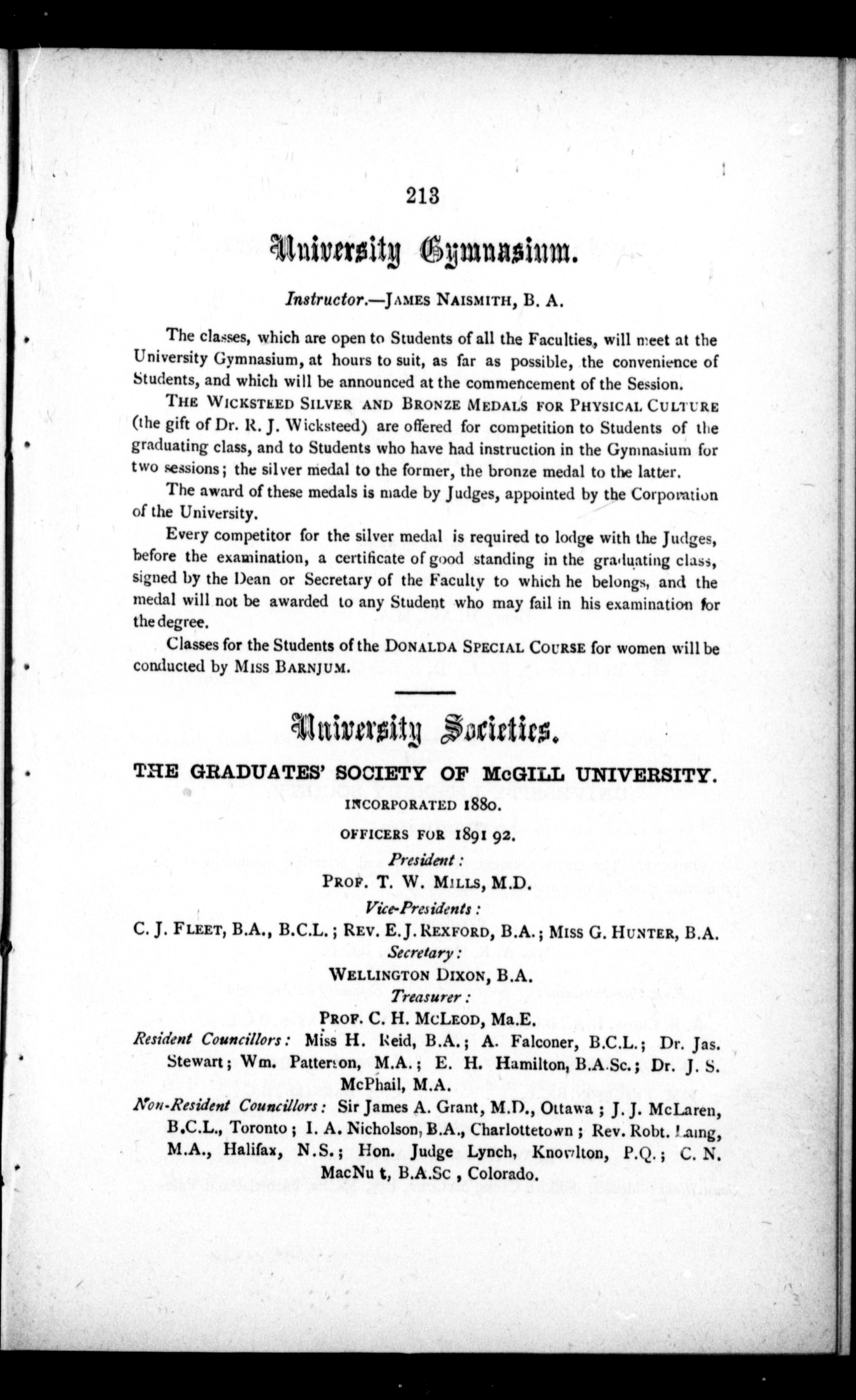 Annual calendar of McGill College and University, Montreal : 1891/92