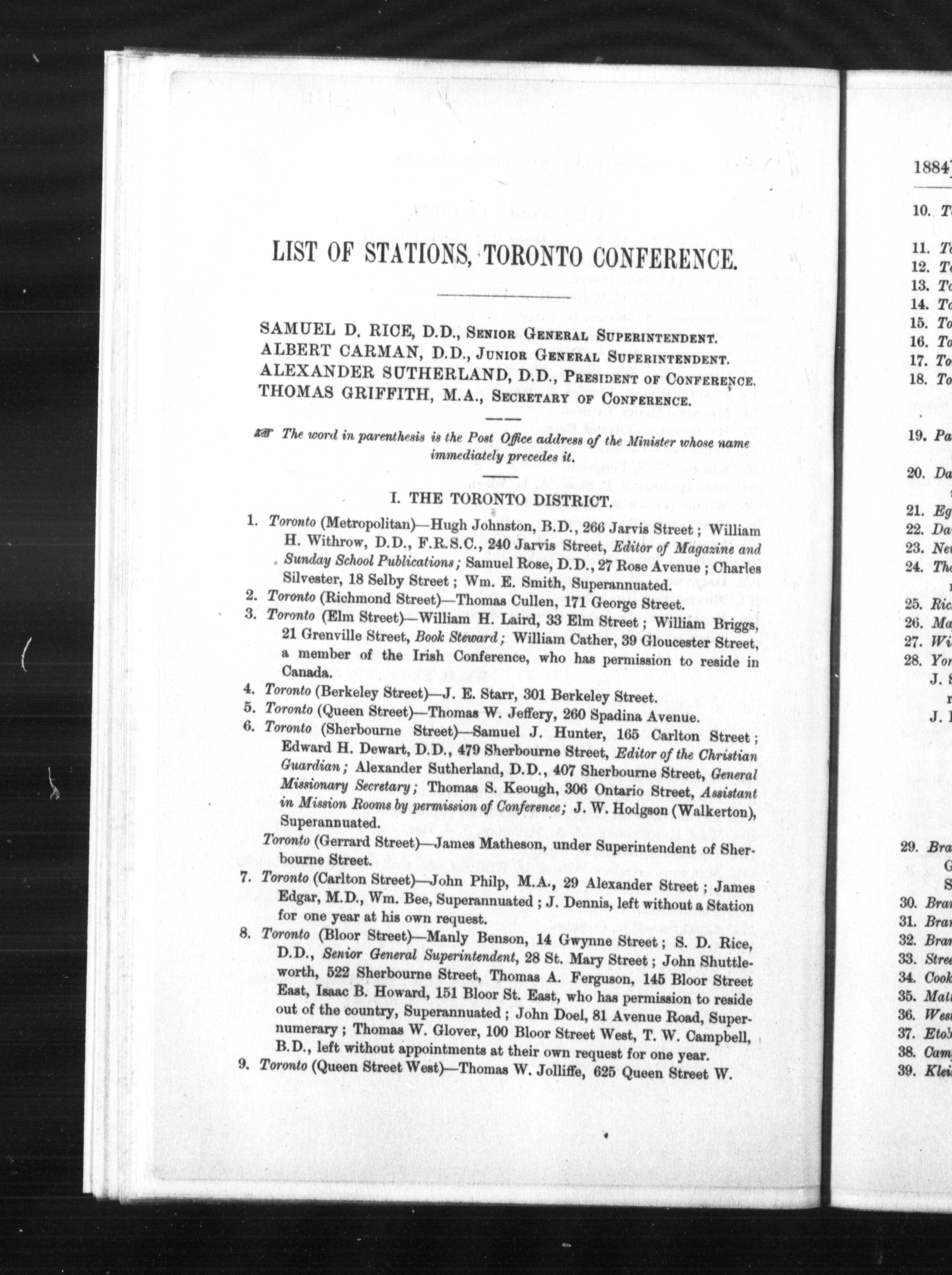 - Minutes of the proceedings of the first session of the Manitoba Annual Conference of the Methodist Church, held in the Methodist Church, Brandon, from June 12th to June 16th, 1884 : First (1884)