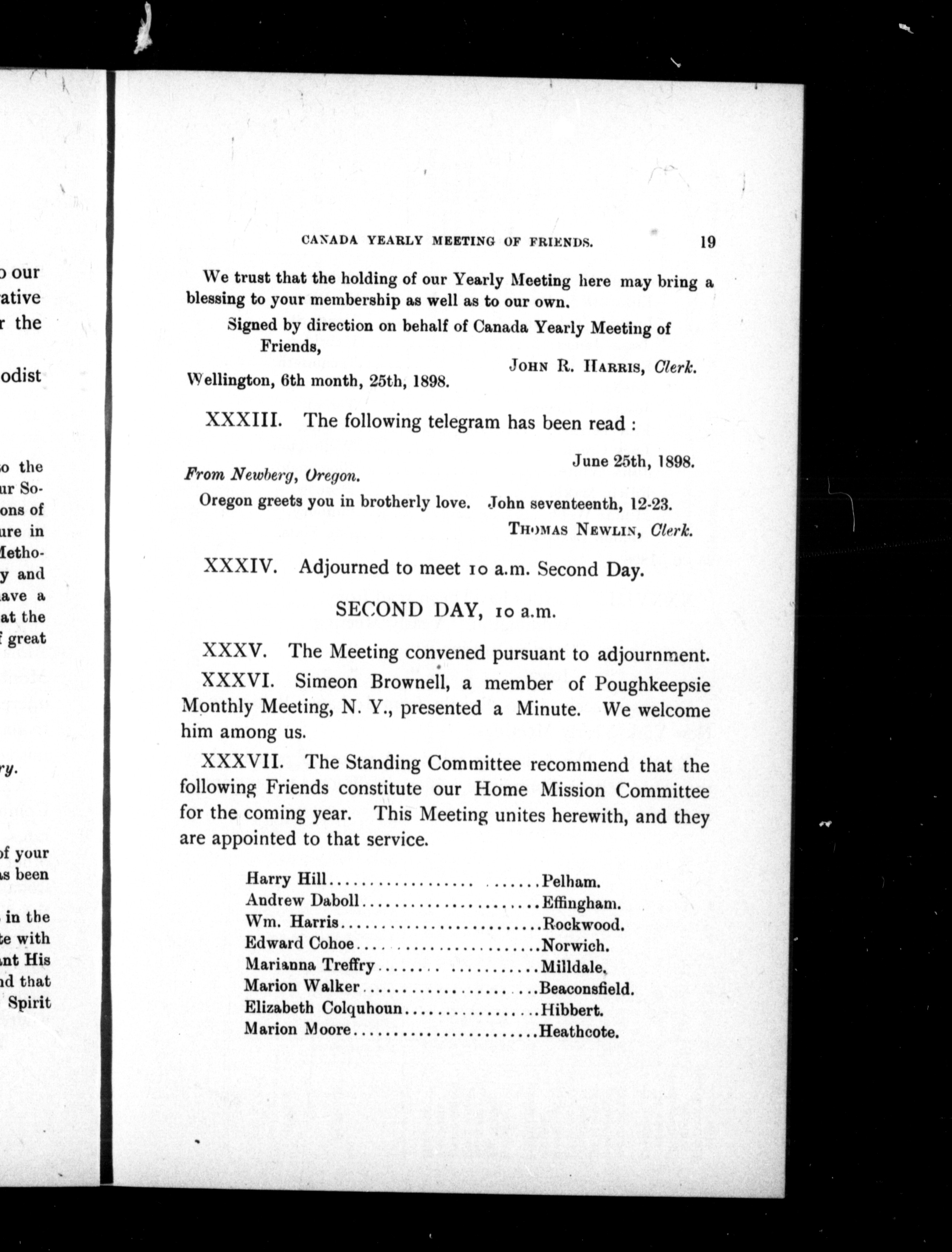 Minutes of Canada Yearly Meeting of Friends ... : Minutes of the Canada Yearly Meeting of Friends held at Wellington, Ontario : 1898