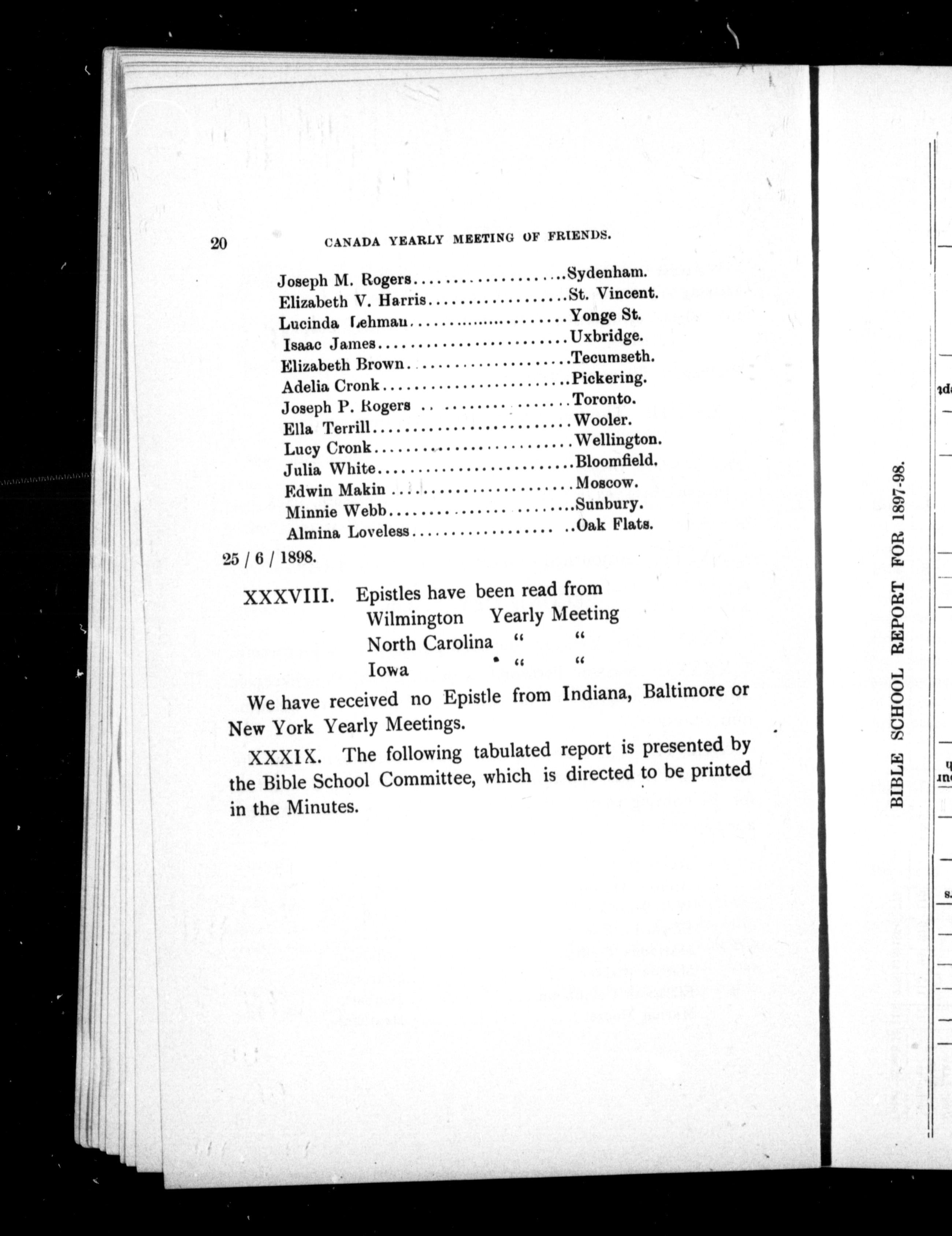 [Toronto] : [Canada Yearly Meeting of Friends], 1898; 54 images avec recherche en texte intégral