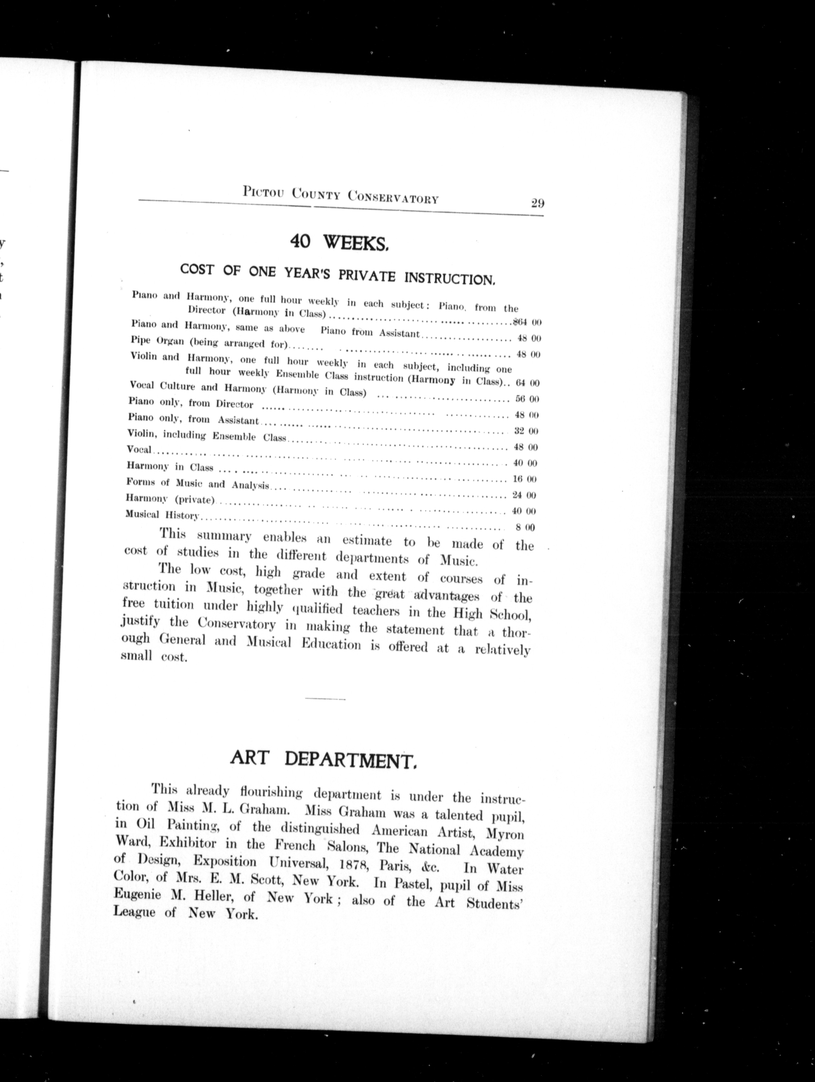 - Prospectus of the Pictou County Conservatory of Music together with the calendar of the High School, New Glasgow, Nova Scotia : 1898/1899