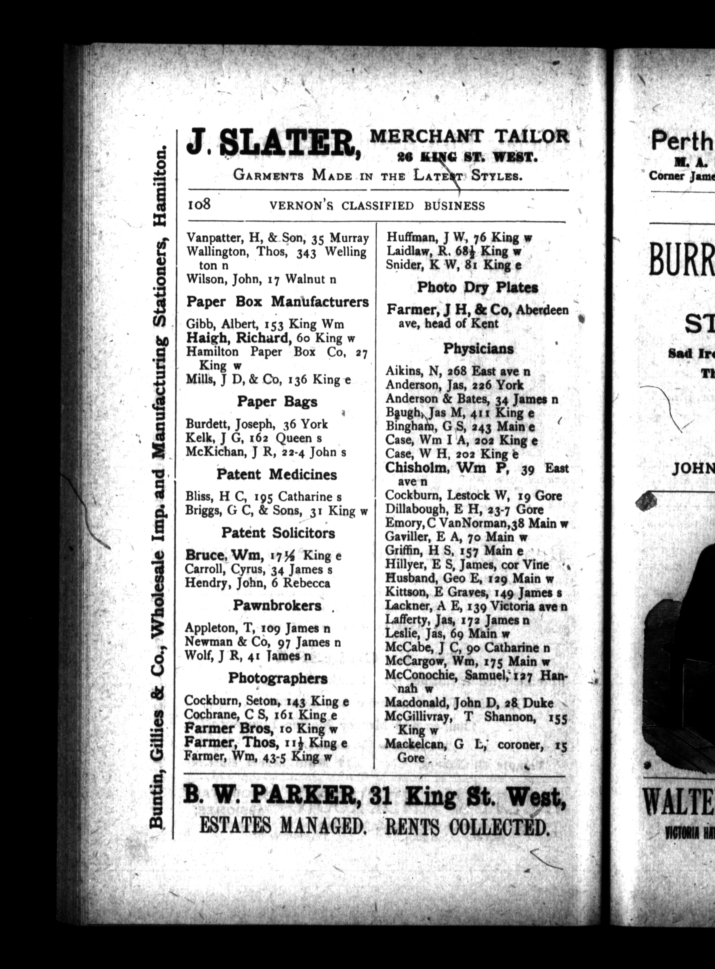 Vernon's ... annual classified business directory of the city of Hamilton : Vernon's first annual classified business directory of the city of Hamilton, to which is added a street guide and miscellaneous directory, for the year 1891 to May 1892 : First (1891/1892)