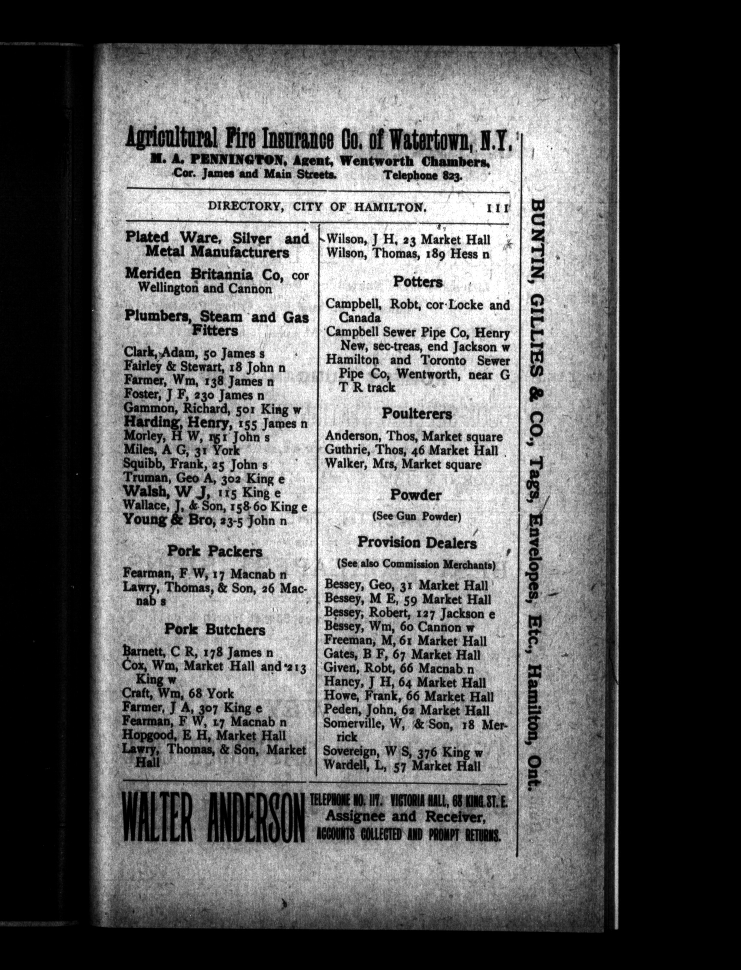 Vernon's ... annual classified business directory of the city of Hamilton : Vernon's first annual classified business directory of the city of Hamilton, to which is added a street guide and miscellaneous directory, for the year 1891 to May 1892 : First (1891/1892)