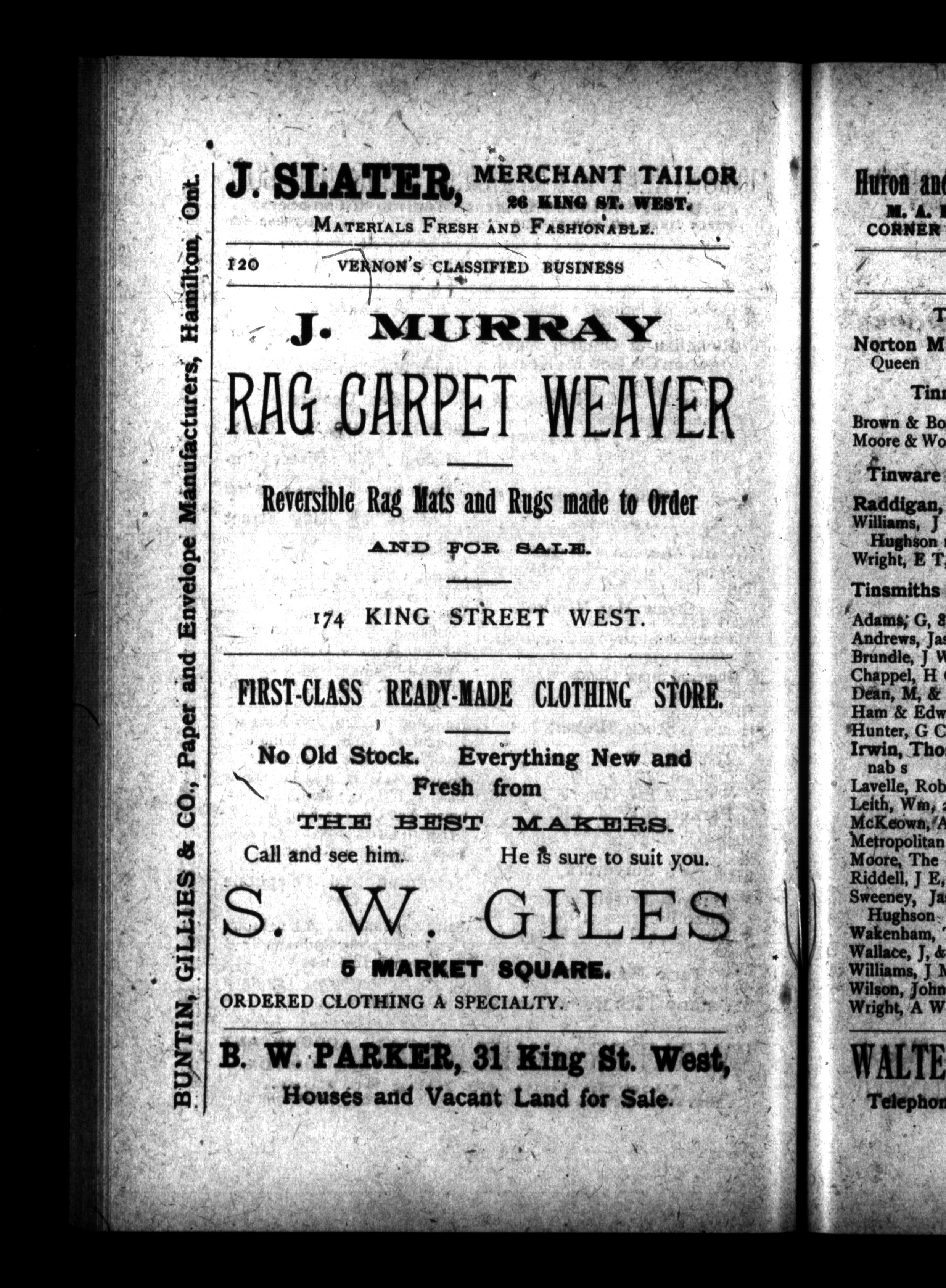 Vernon's ... annual classified business directory of the city of Hamilton : Vernon's first annual classified business directory of the city of Hamilton, to which is added a street guide and miscellaneous directory, for the year 1891 to May 1892 : First (1891/1892)