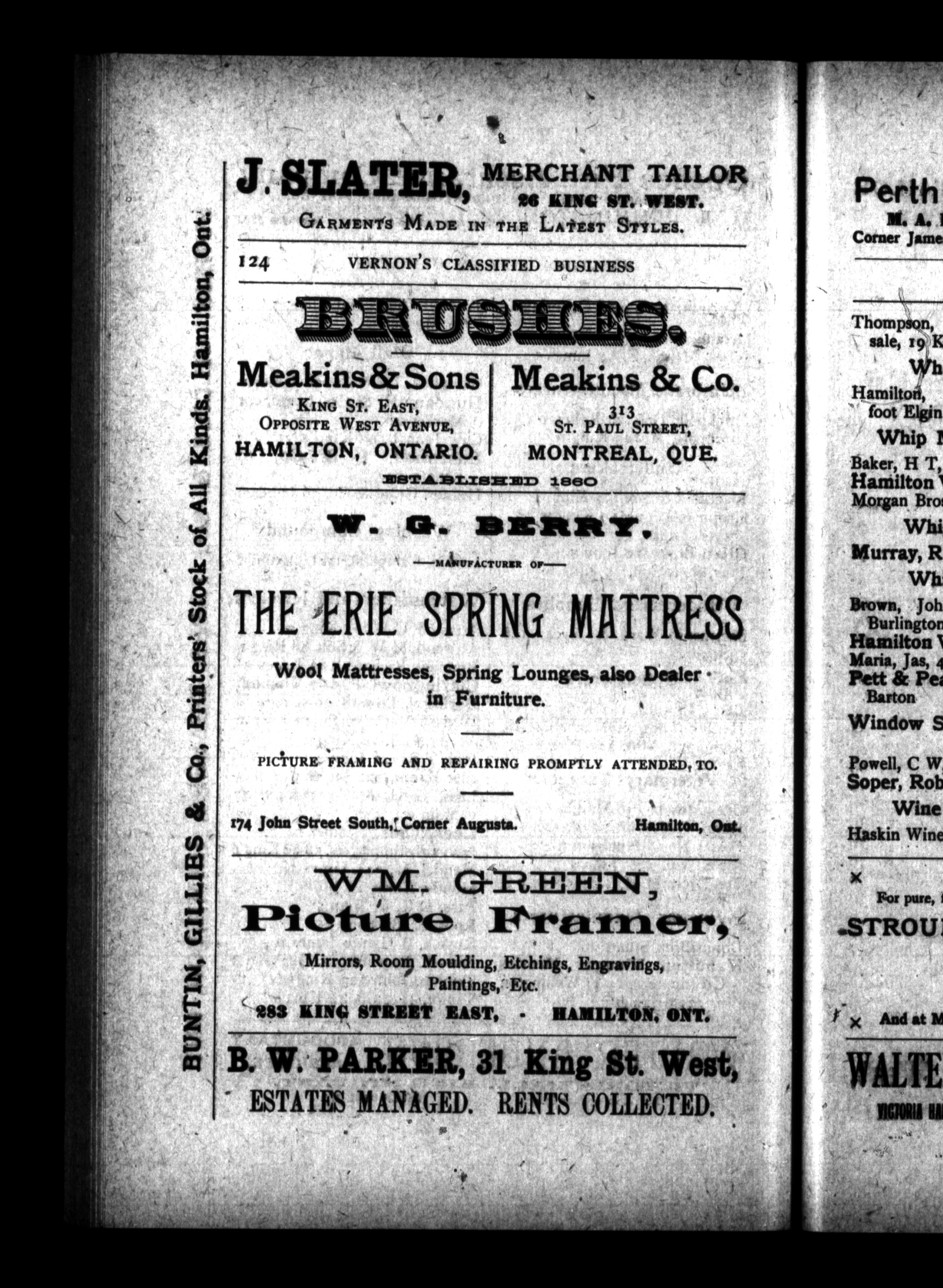 Vernon's ... annual classified business directory of the city of Hamilton : Vernon's first annual classified business directory of the city of Hamilton, to which is added a street guide and miscellaneous directory, for the year 1891 to May 1892 : First (1891/1892)