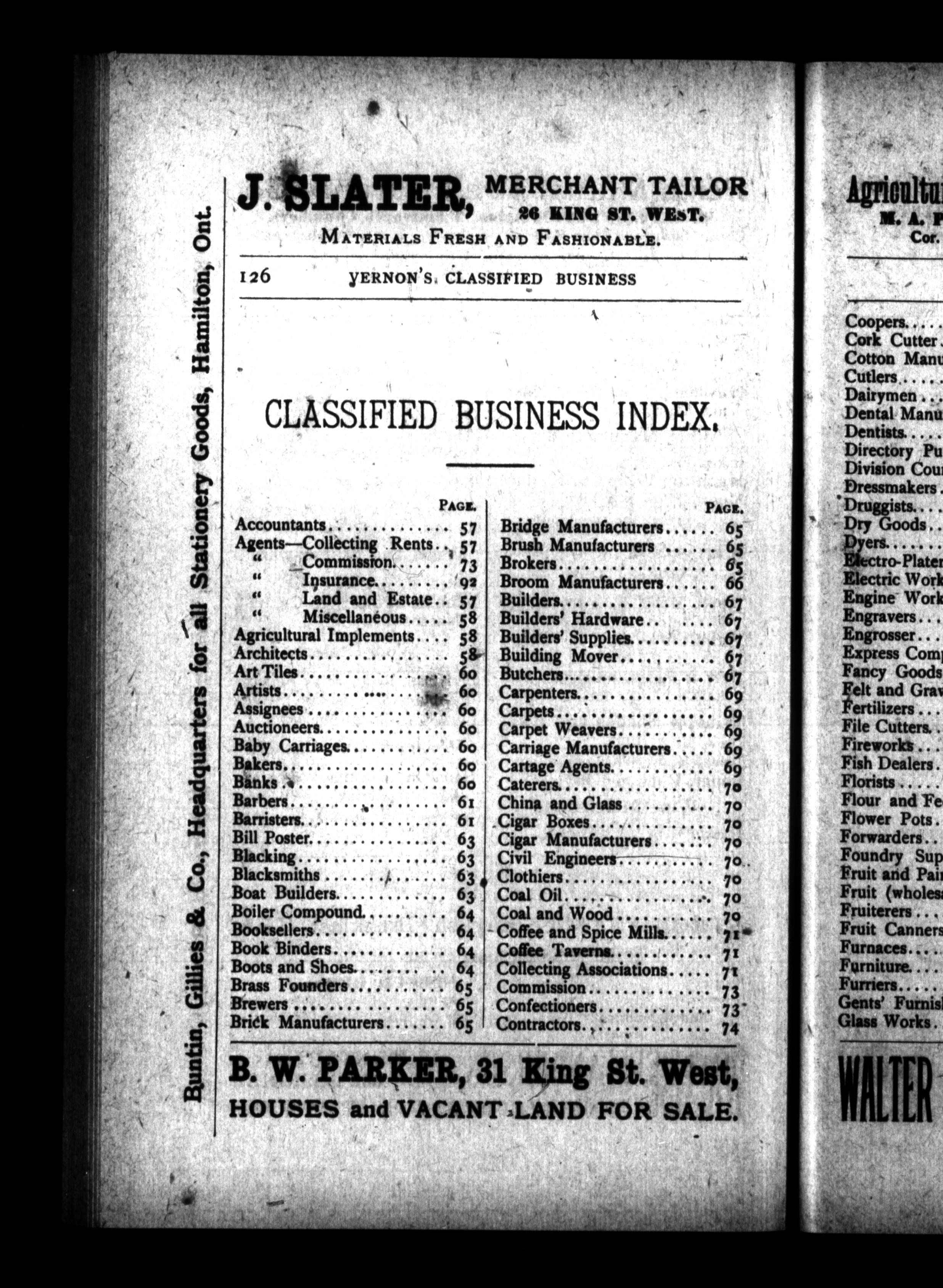 Vernon's ... annual classified business directory of the city of Hamilton : Vernon's first annual classified business directory of the city of Hamilton, to which is added a street guide and miscellaneous directory, for the year 1891 to May 1892 : First (1891/1892)
