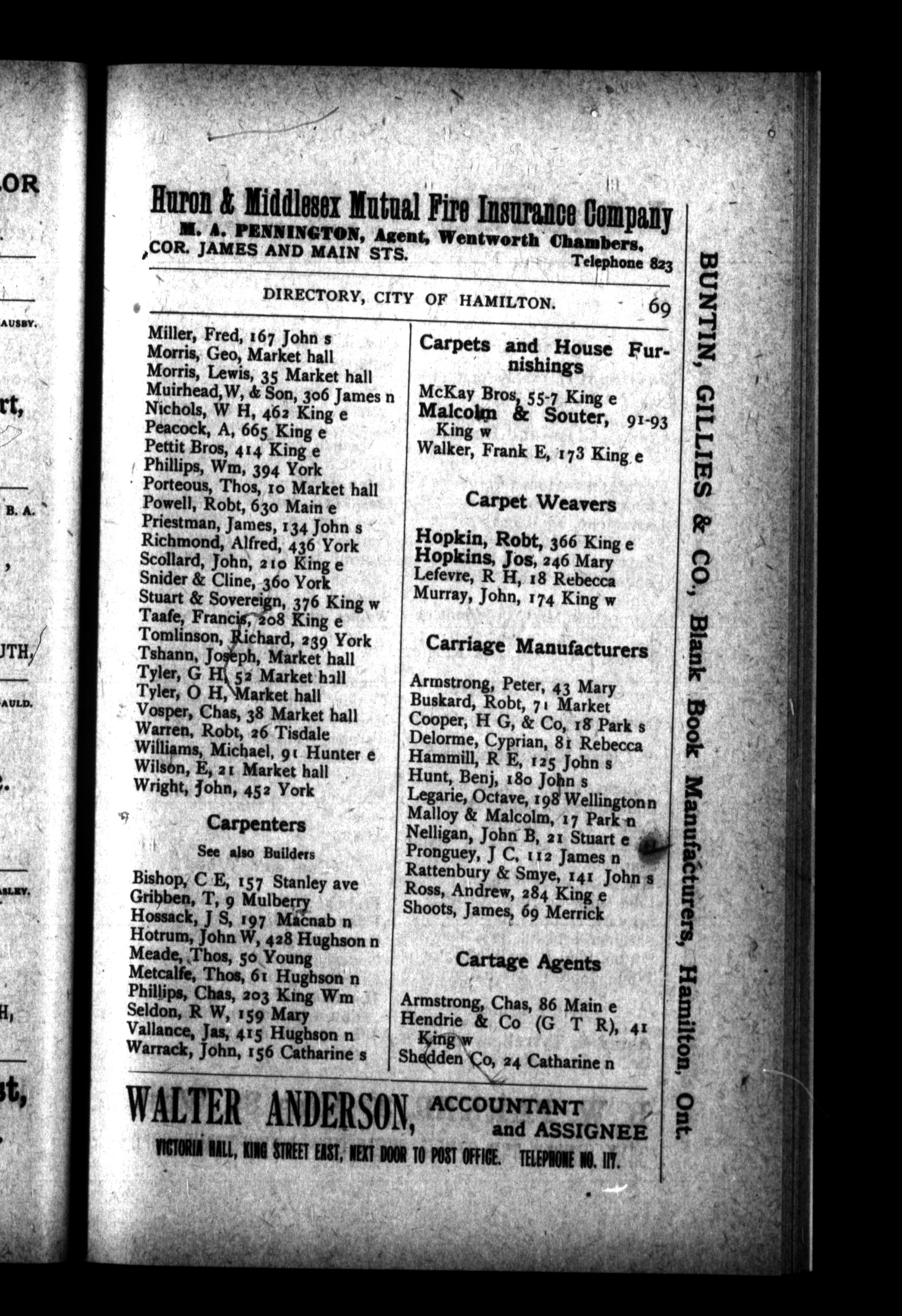 Vernon's ... annual classified business directory of the city of Hamilton : Vernon's first annual classified business directory of the city of Hamilton, to which is added a street guide and miscellaneous directory, for the year 1891 to May 1892 : First (1891/1892)