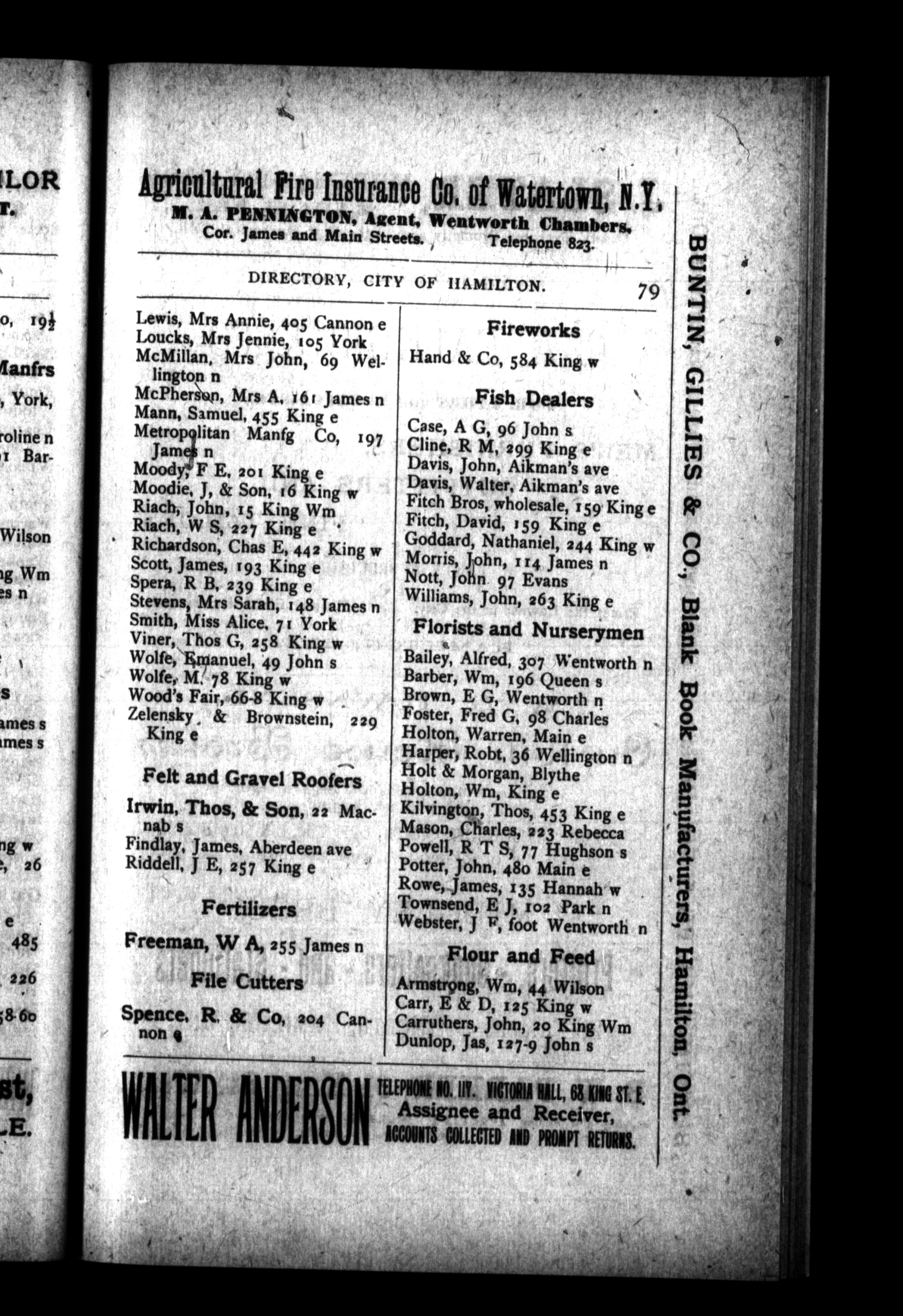 - Vernon's first annual classified business directory of the city of Hamilton, to which is added a street guide and miscellaneous directory, for the year 1891 to May 1892 : First (1891/1892)