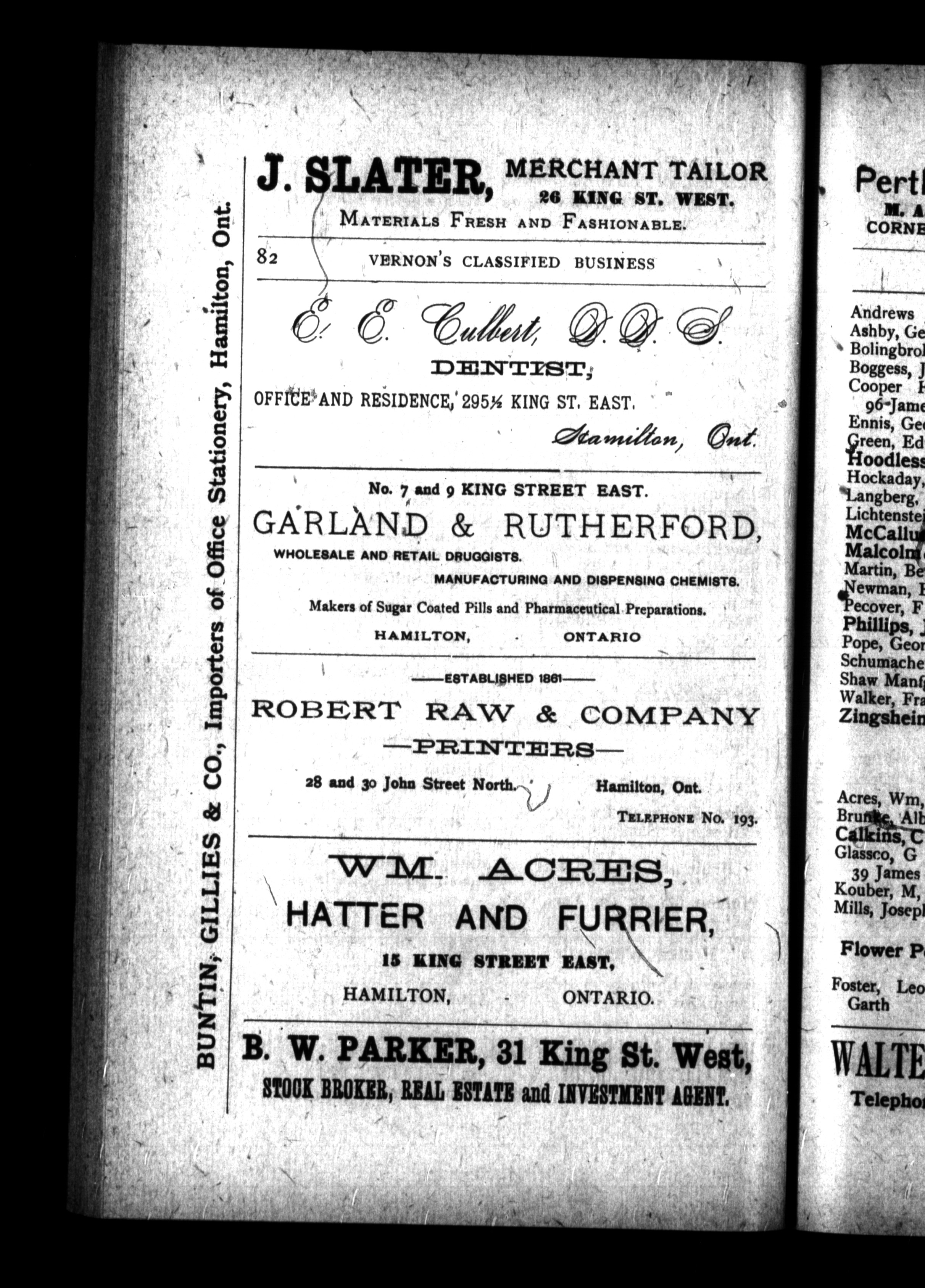 Vernon's ... annual classified business directory of the city of Hamilton : Vernon's first annual classified business directory of the city of Hamilton, to which is added a street guide and miscellaneous directory, for the year 1891 to May 1892 : First (1891/1892)
