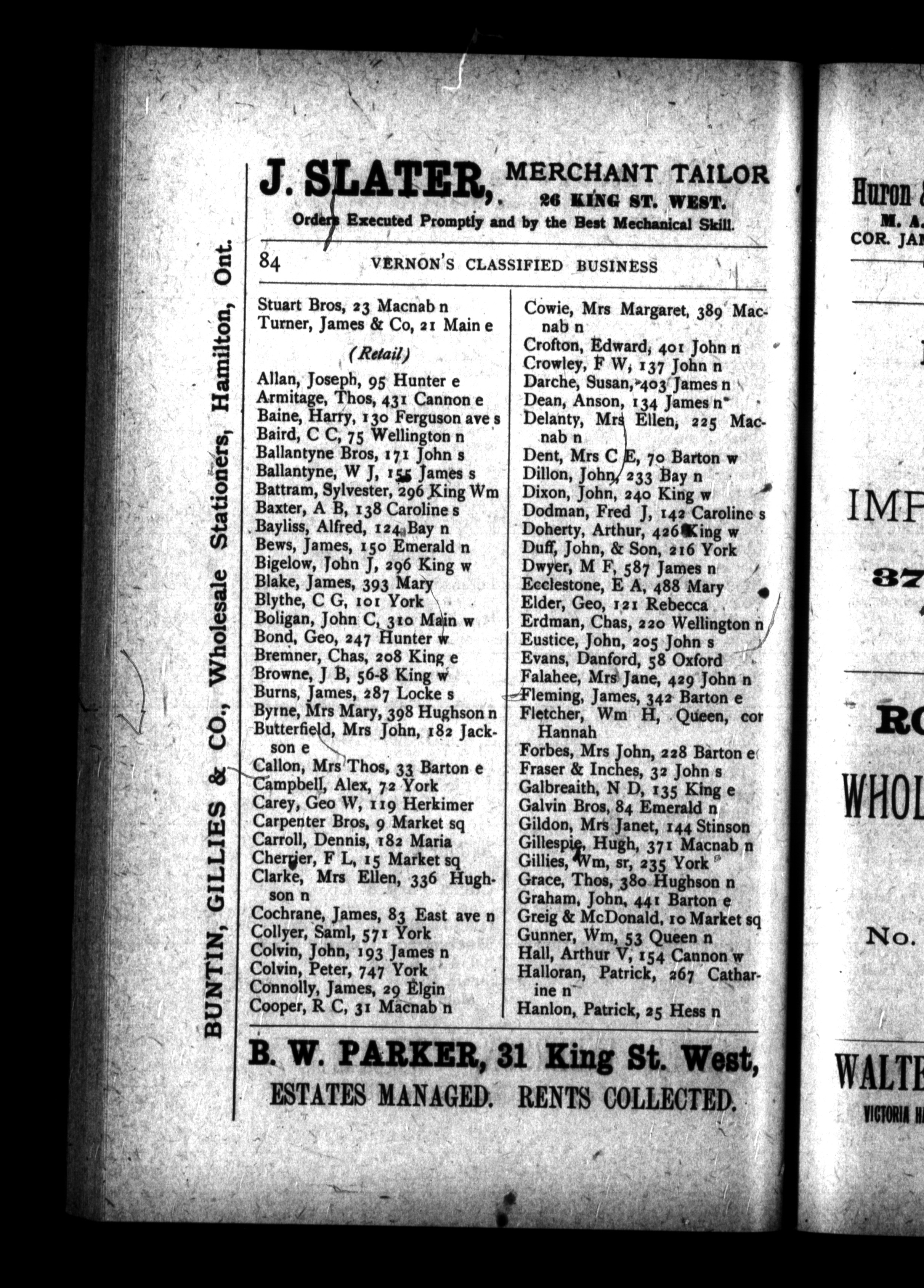 Vernon's ... annual classified business directory of the city of Hamilton : Vernon's first annual classified business directory of the city of Hamilton, to which is added a street guide and miscellaneous directory, for the year 1891 to May 1892 : First (1891/1892)