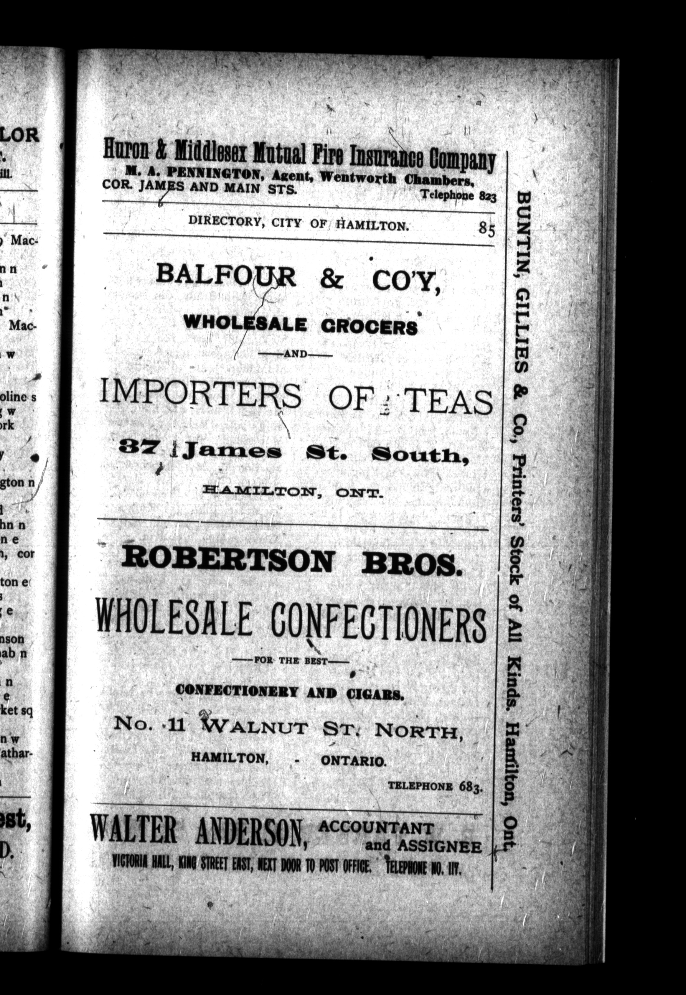 Vernon's ... annual classified business directory of the city of Hamilton : Vernon's first annual classified business directory of the city of Hamilton, to which is added a street guide and miscellaneous directory, for the year 1891 to May 1892 : First (1891/1892)