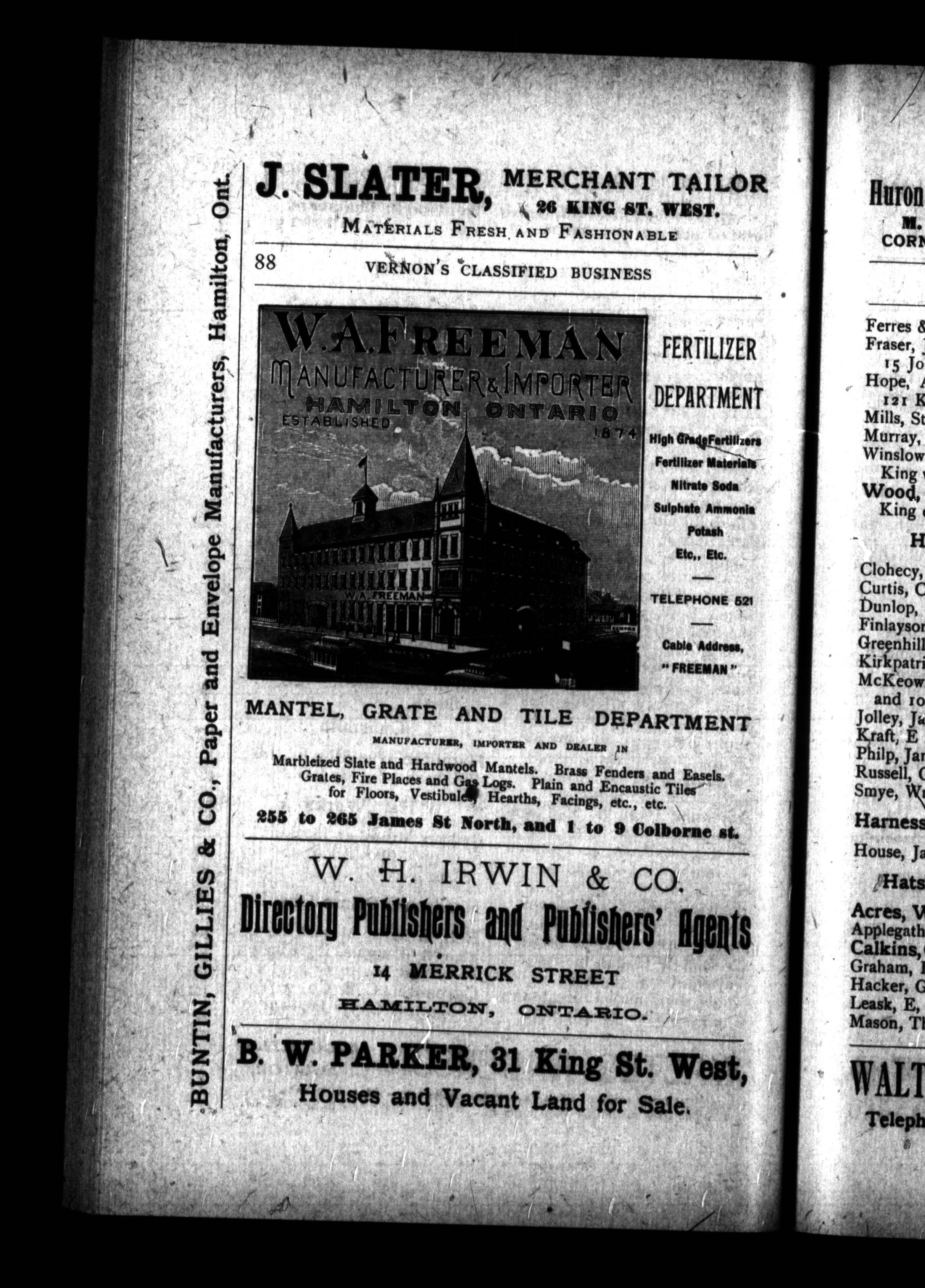 - Vernon's first annual classified business directory of the city of Hamilton, to which is added a street guide and miscellaneous directory, for the year 1891 to May 1892 : First (1891/1892)