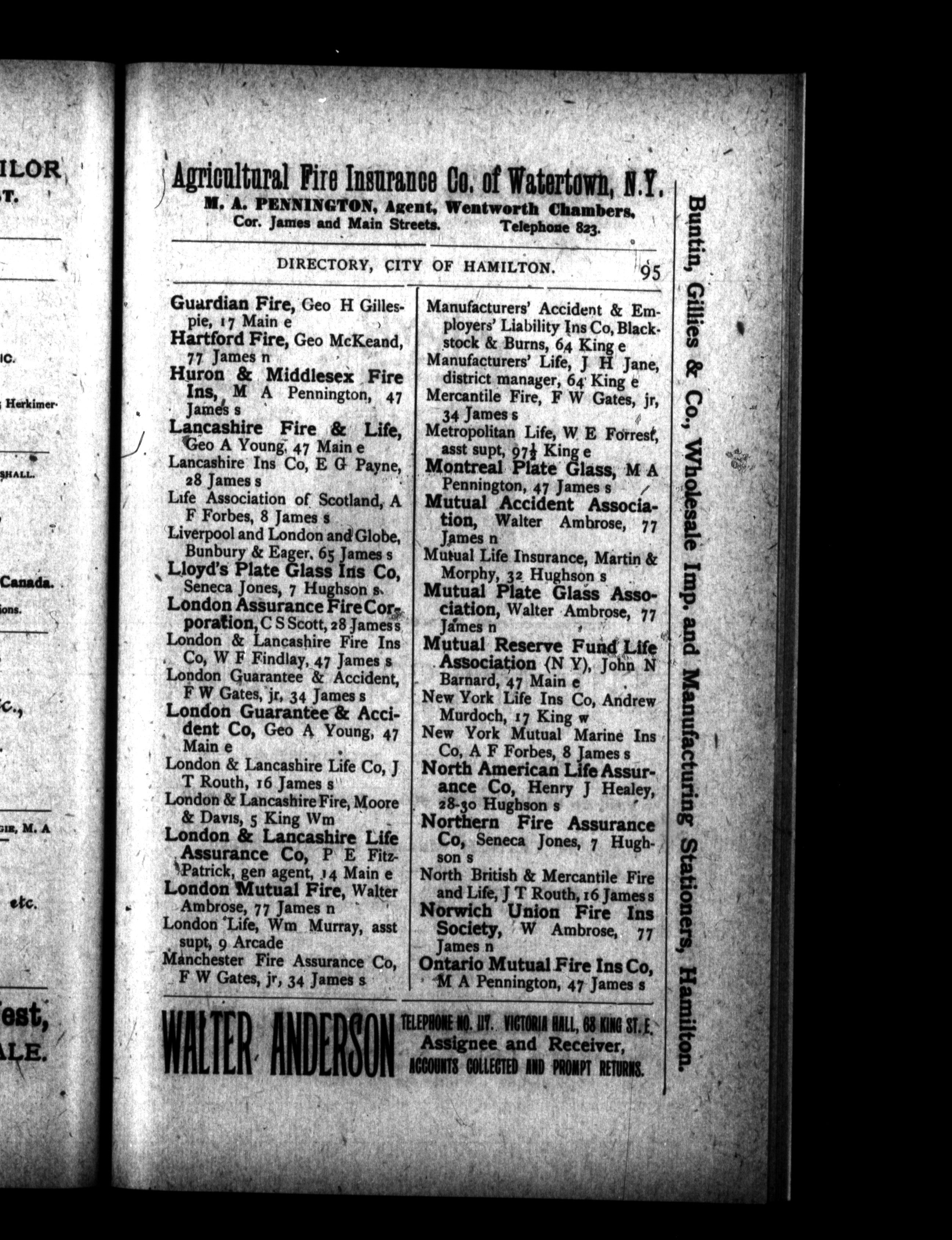 - Vernon's first annual classified business directory of the city of Hamilton, to which is added a street guide and miscellaneous directory, for the year 1891 to May 1892 : First (1891/1892)