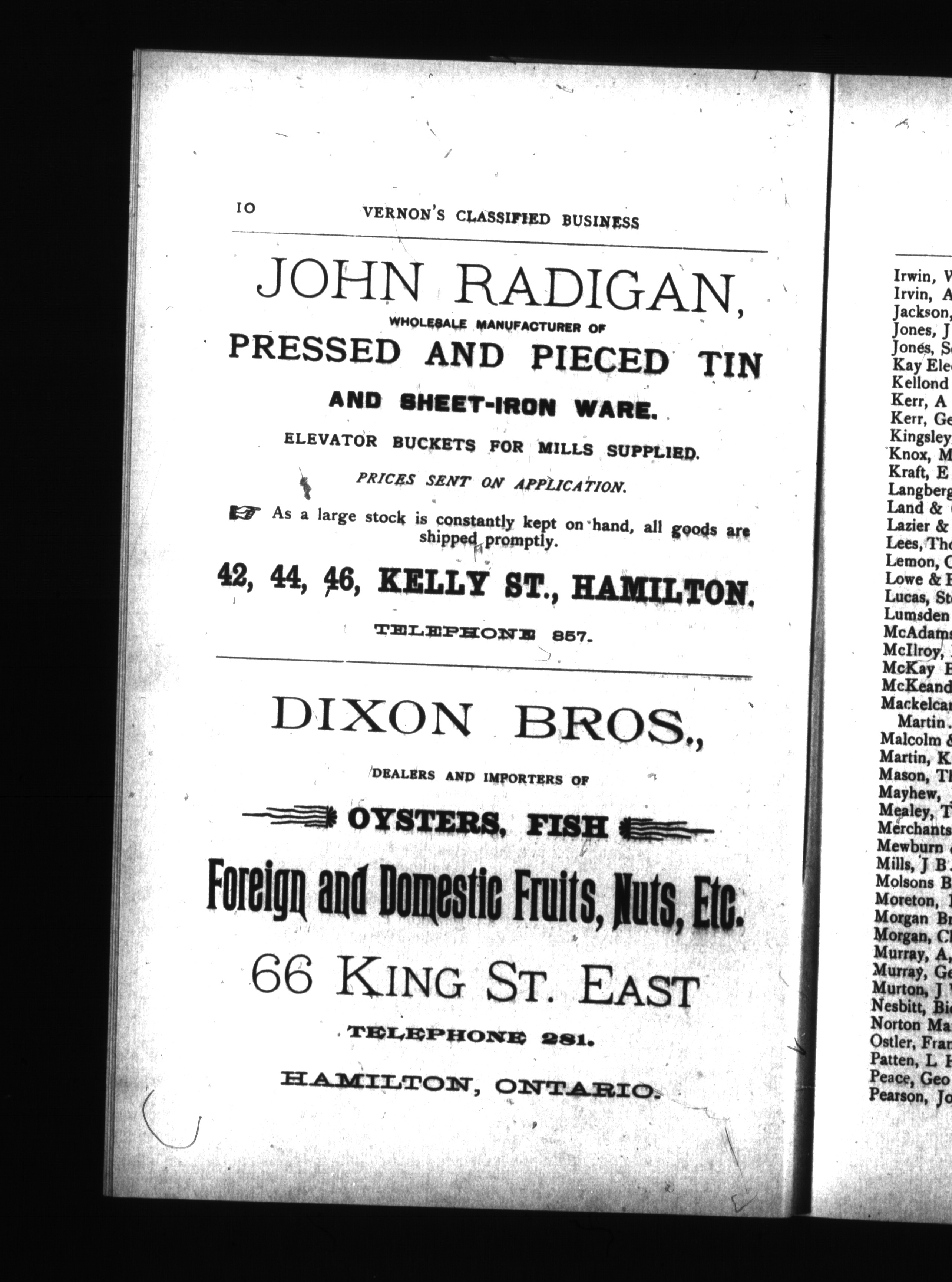 Vernon's second annual classified business directory, street guide and miscellaneous directory of the city of Hamilton, to which is added an alphabetical directory of the town of Dundas for the year 1892, to May, 1893 : Second (1892/1893)