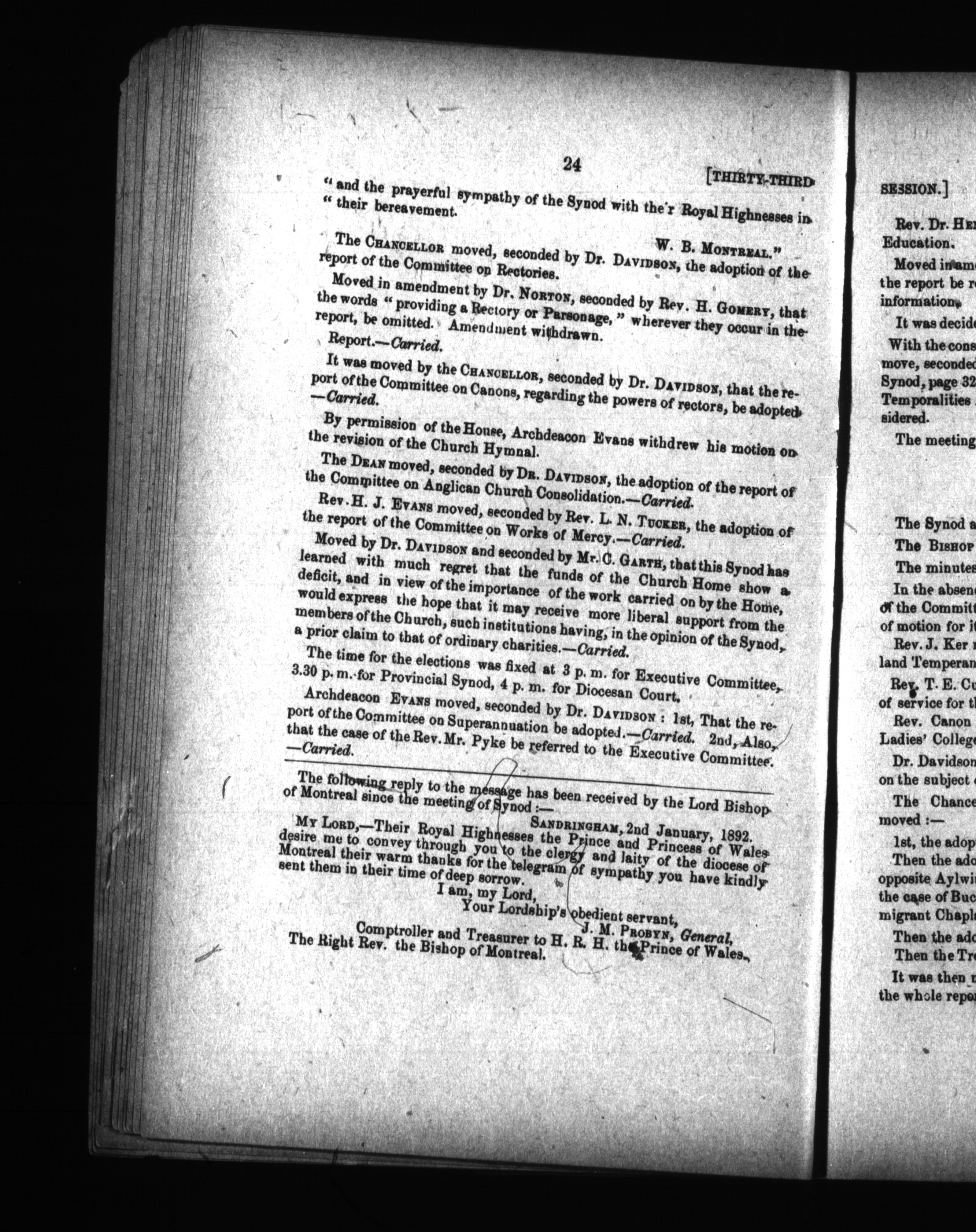Proceedings of the ... annual Synod of the Diocese of Montreal, Canada : Proceedings of the thirty-third annual Synod of the Diocese of Montreal, Canada, held in the city of Montreal, on the 19th, 20th, and 21st days of January, in the year of our Lord MDCCCXCII : Thirty-Third (1892)