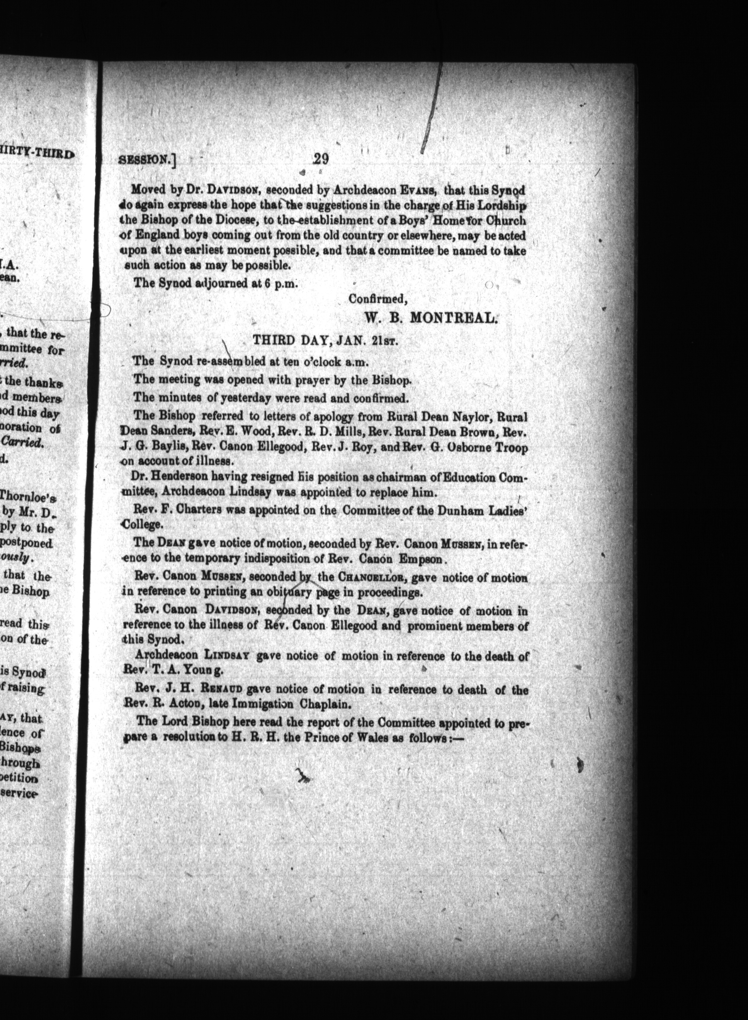 Proceedings of the ... annual Synod of the Diocese of Montreal, Canada : Proceedings of the thirty-third annual Synod of the Diocese of Montreal, Canada, held in the city of Montreal, on the 19th, 20th, and 21st days of January, in the year of our Lord MDCCCXCII : Thirty-Third (1892)