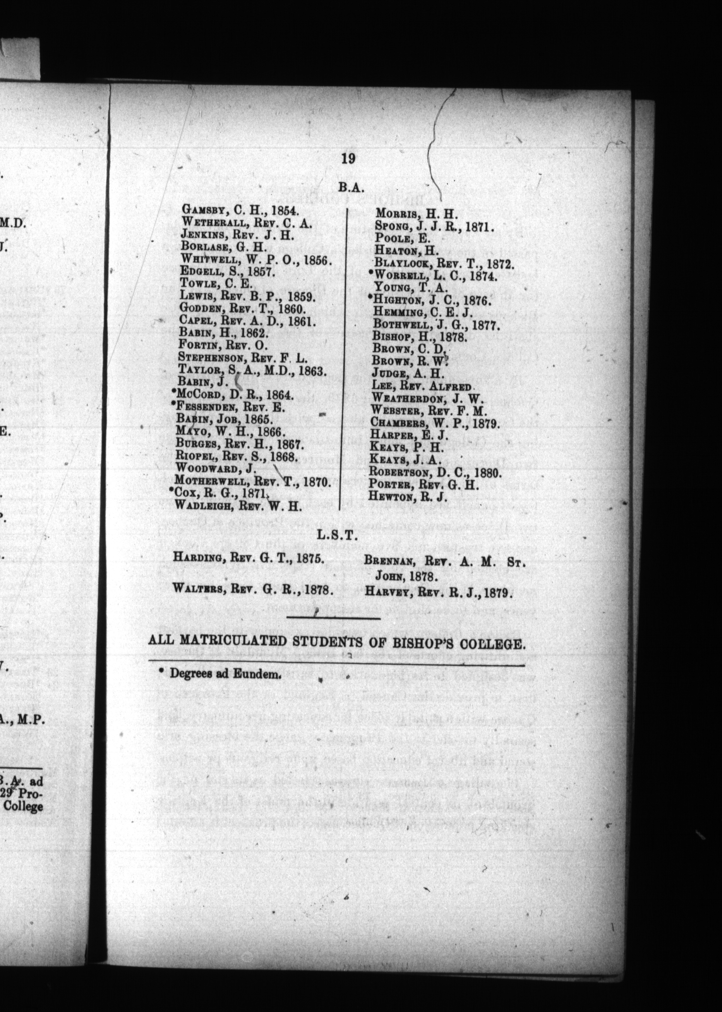 [Lennoxville, Quebec] : [University of Bishop's College], 1880; 53 images with full-text search