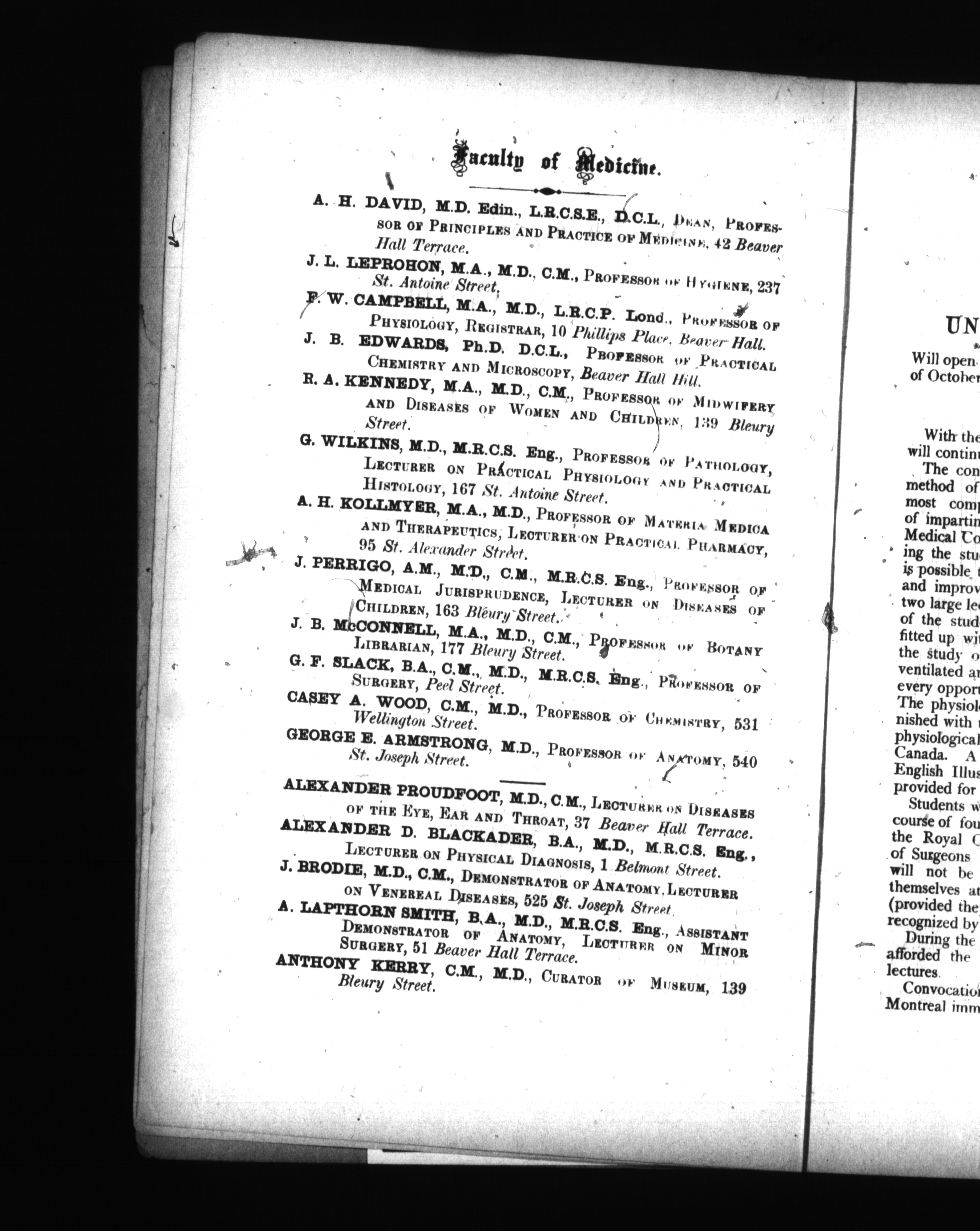 [Montréal] : [Faculty of Medicine of the University of Bishop's College], 1879; 47 images avec recherche en texte intégral