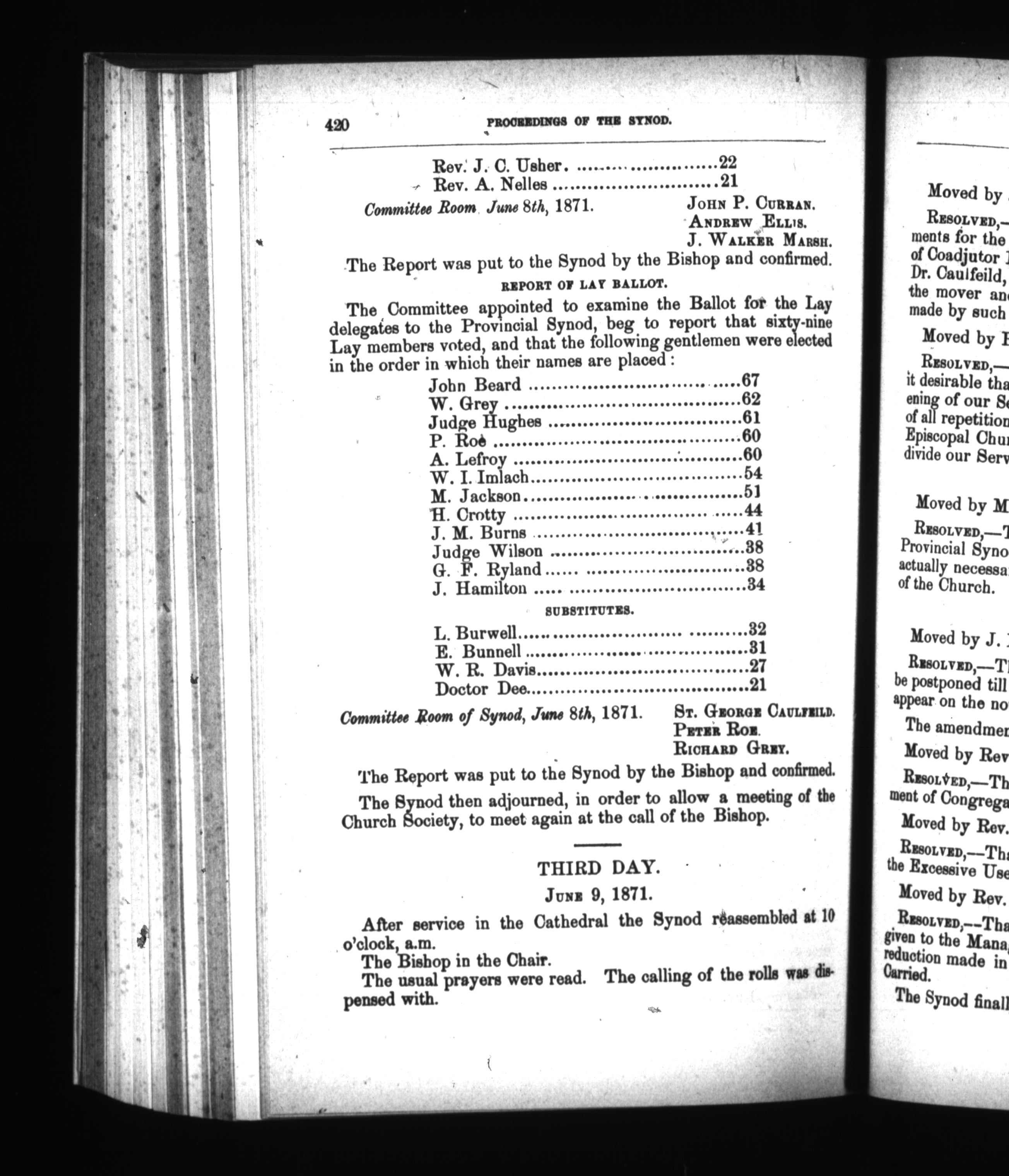 [London, Ont.] : [Synod of the Diocese of Huron], 1871; 71 images avec recherche en texte intégral