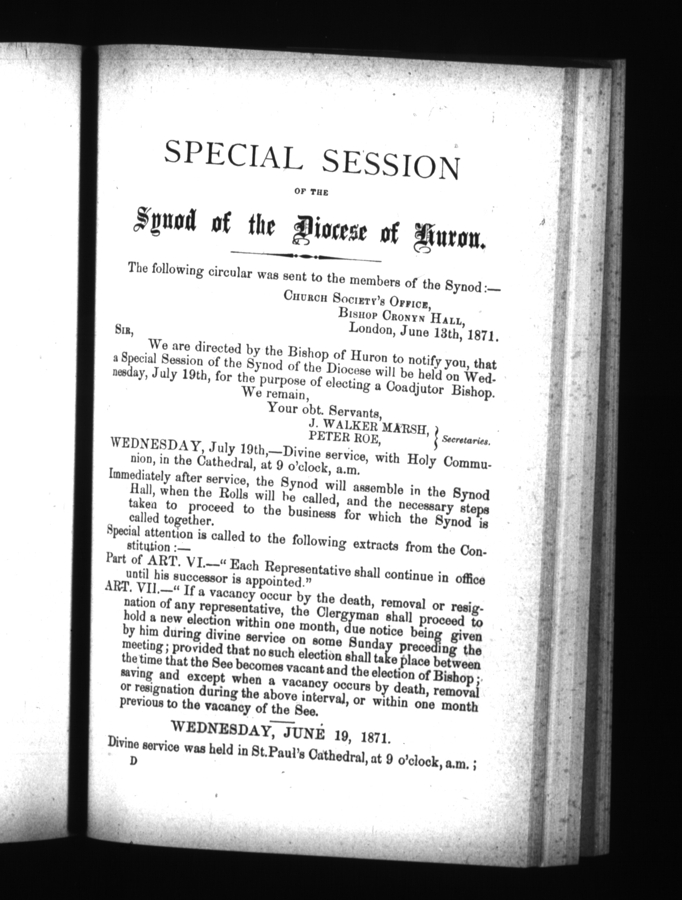 [London, Ont.] : [Synod of the Diocese of Huron], 1871; 71 images avec recherche en texte intégral