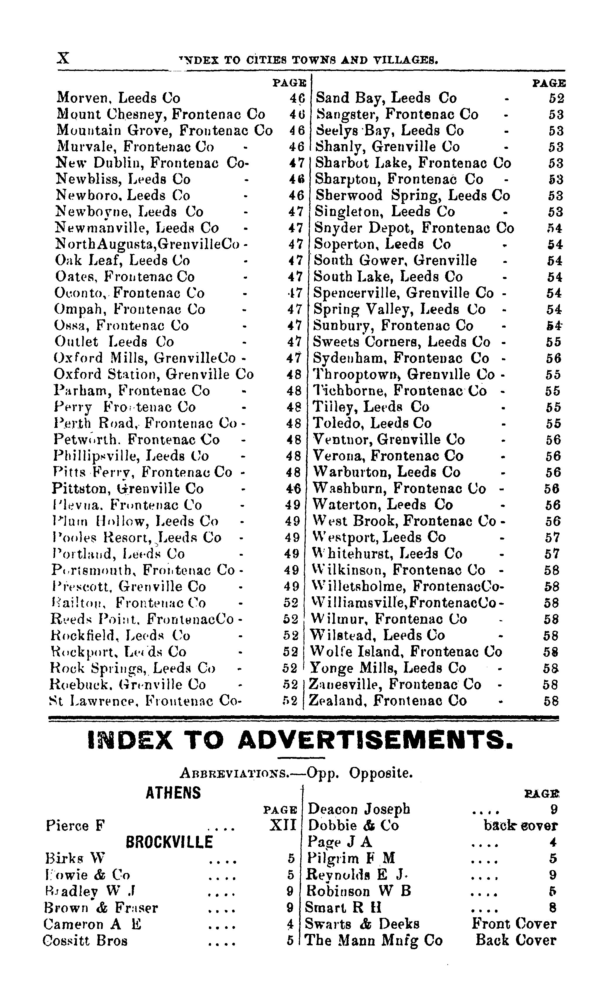 The Union Publishing Company's (of Ingersoll) farmers' and business directory for the counties of Frontenac, Grenville and Leeds