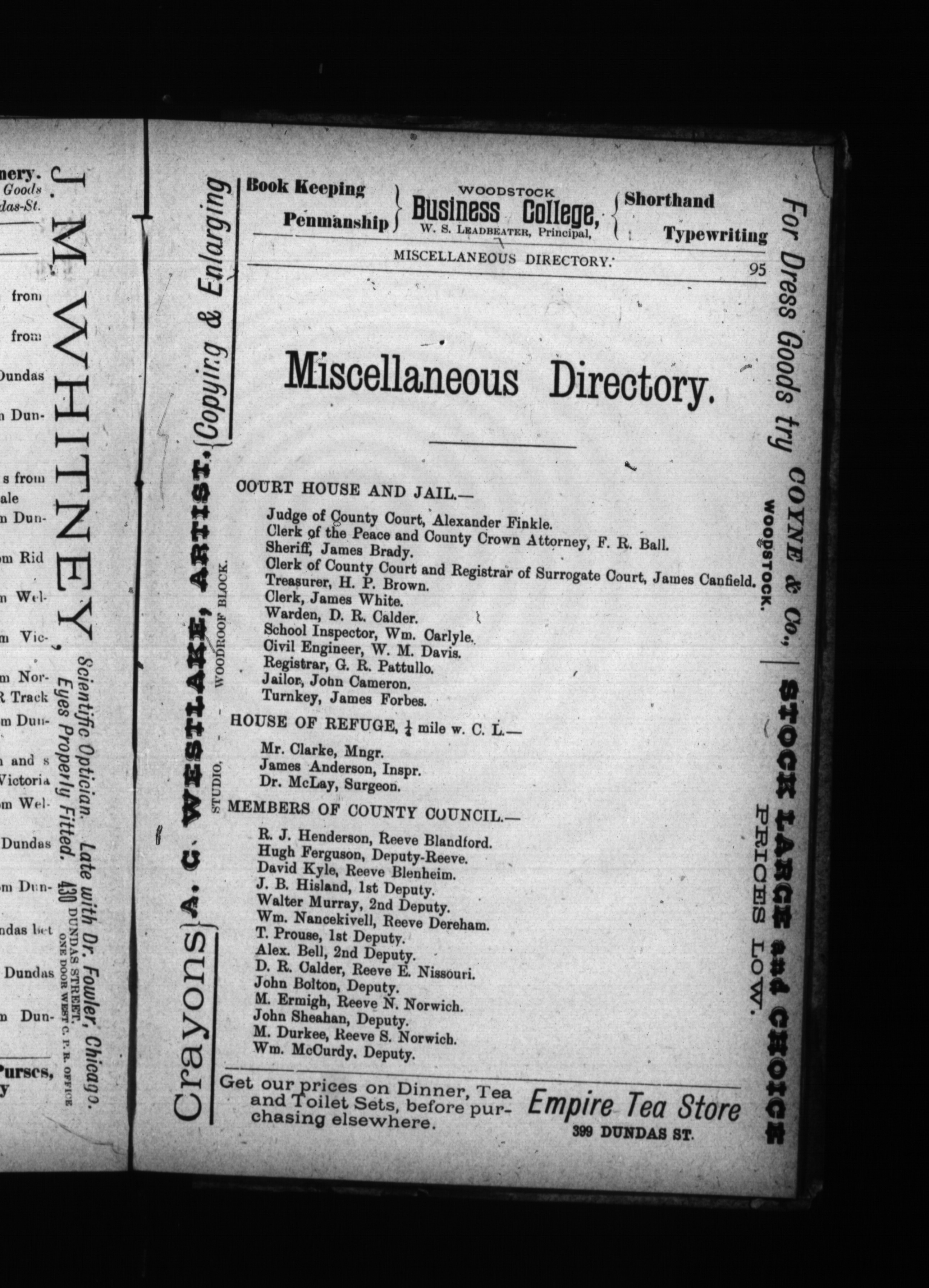 Union Publishing Co's (of Ingersoll) Woodstock directory, 1893 : 1893