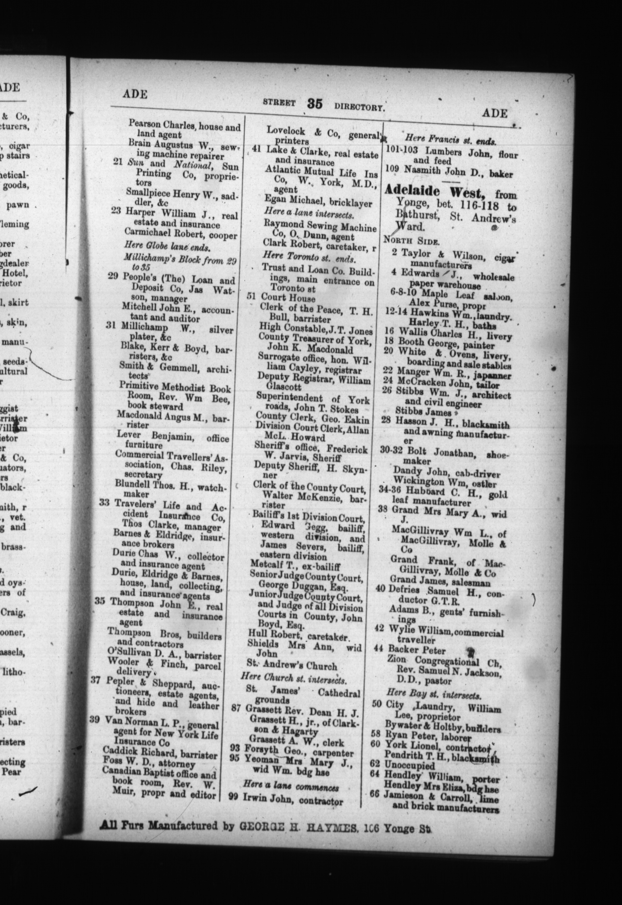 Toronto directory, for ... : :