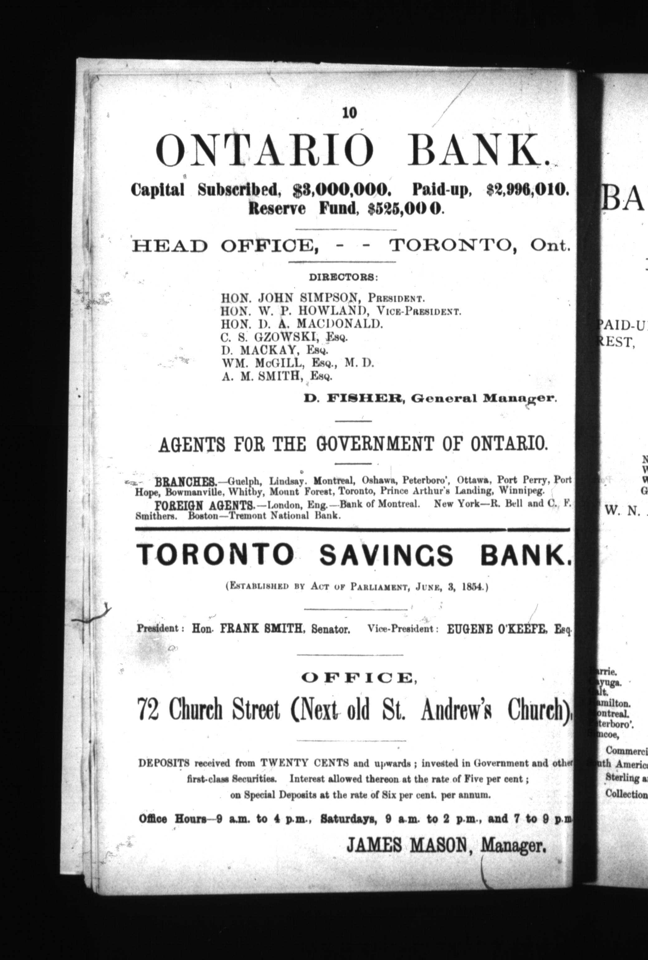 Toronto : Might & Taylor, Publishers, [1877?]; 525 images avec recherche en texte intégral