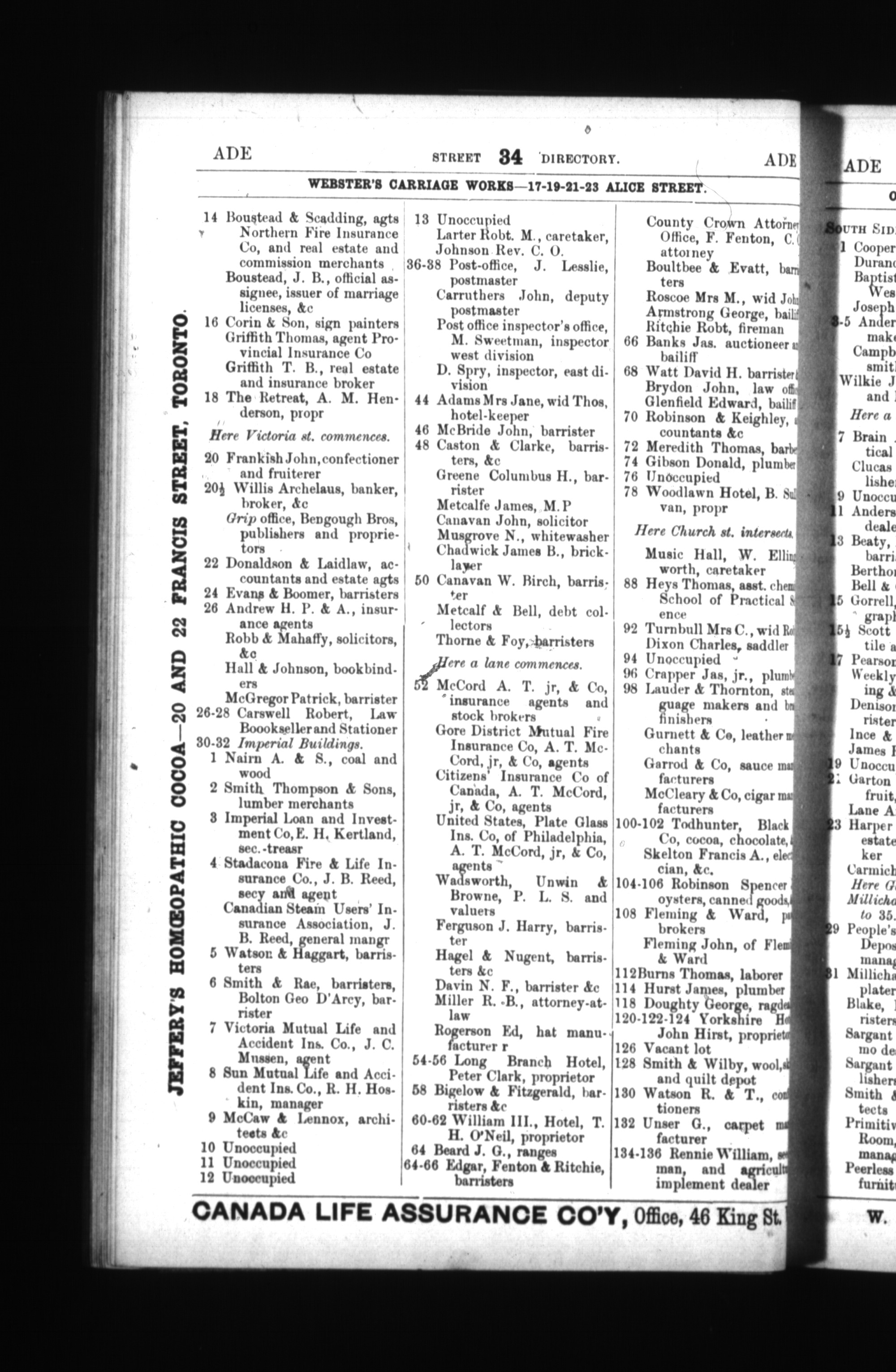 Toronto directory, for 1877 : containing an alphabetical directory of the citizens, and a street directory, with classified business directory, and a miscellaneous directory : 1877