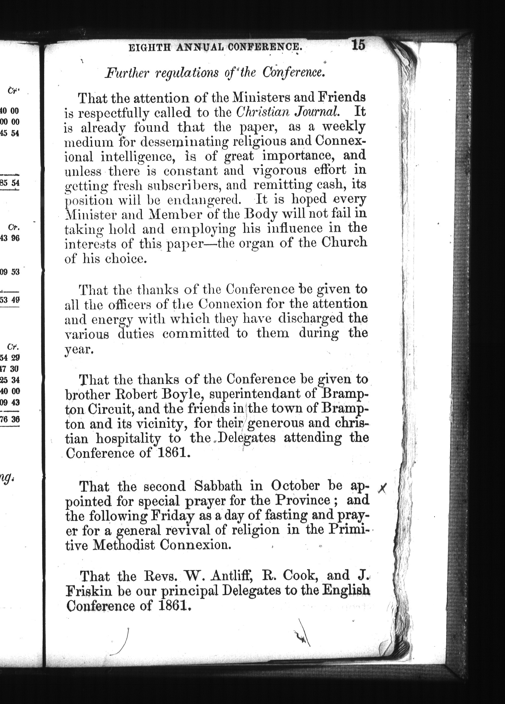 - Minutes of the eighth annual conference of the Primitive Methodist Church, Canada, held at Brampton, on April 19th, 1861, and following days : Eighth (1861)