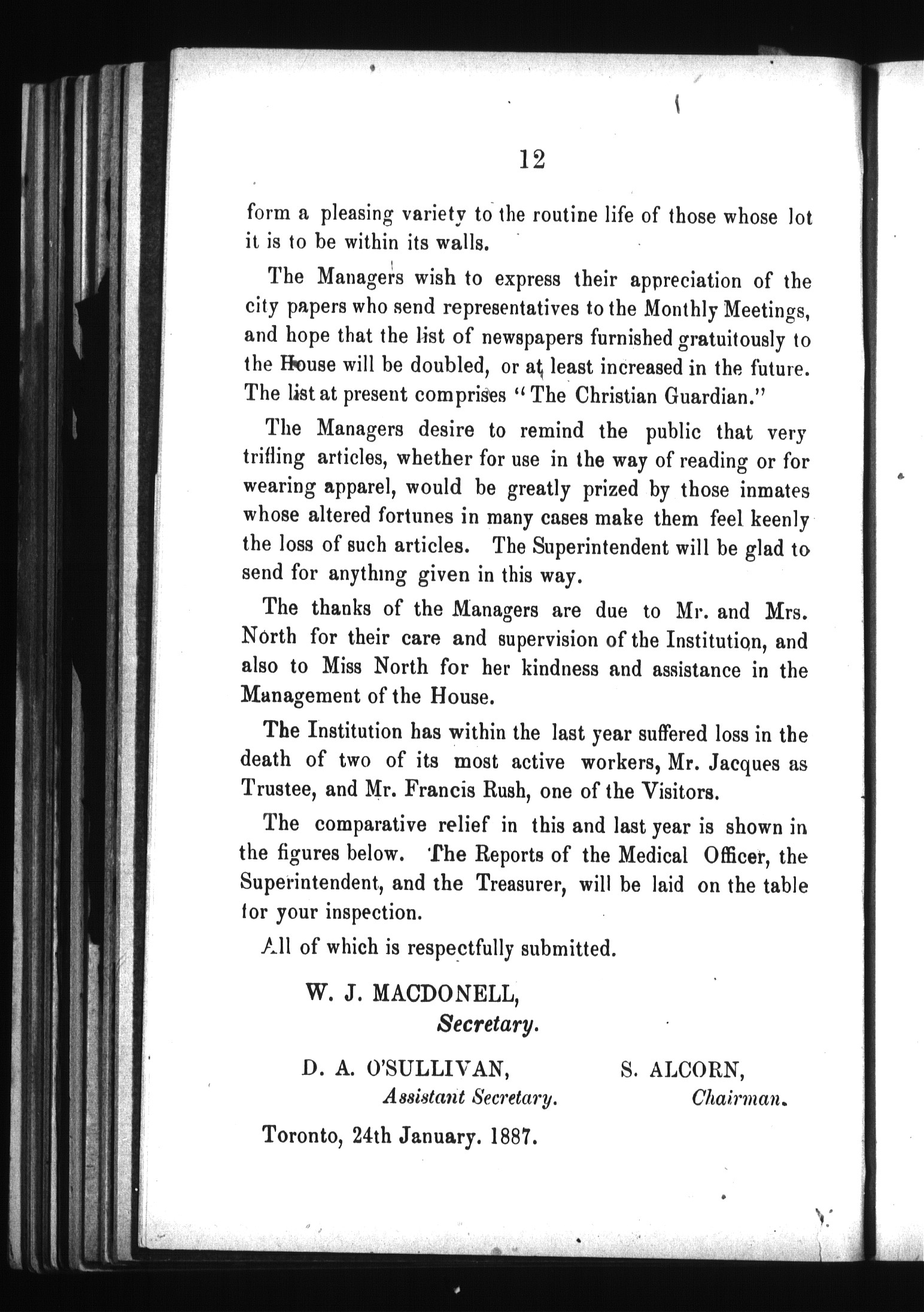 Fiftieth annual report of the House of Industry, city of Toronto, for the year 1886 : Fiftieth (1886)