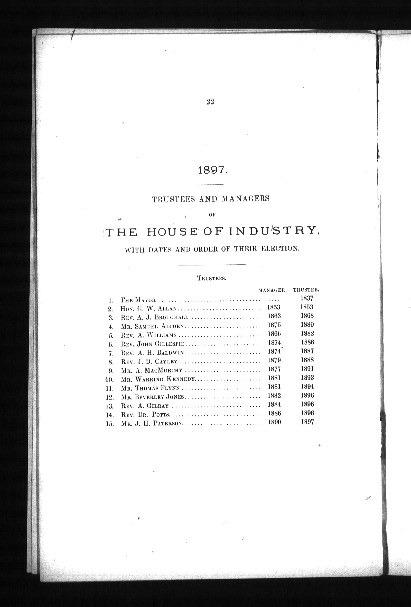 Sixtieth annual report of the House of Industry, city of Toronto, for the year 1896-97 : Sixtieth (1896/97)