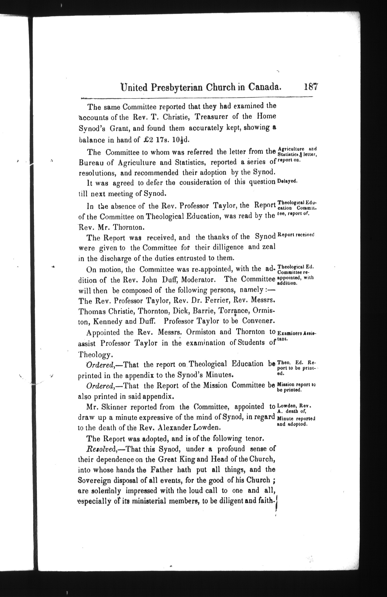 [Ontario] : [Synod of the United Presbyterian Church in Canada (formerly the Missionary Synod in Canada) in connexion with the United Presbyterian Synod in Scotland], 1856; 41 images avec recherche en texte intégral