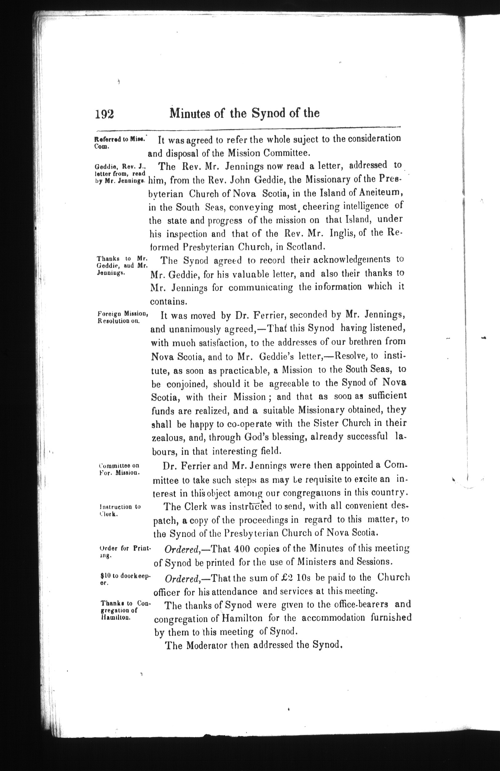 Minutes of the ... session of the Synod of the United Presbyterian Church in Canada (formerly the Missionary Synod in Canada) in connexion with the United Presbyterian Synod in Scotland : Minutes of the twentieth session of the Synod of the United Presbyterian Church in Canada, held in Hamilton, June 3-6, 1856 : Twentieth (1856)